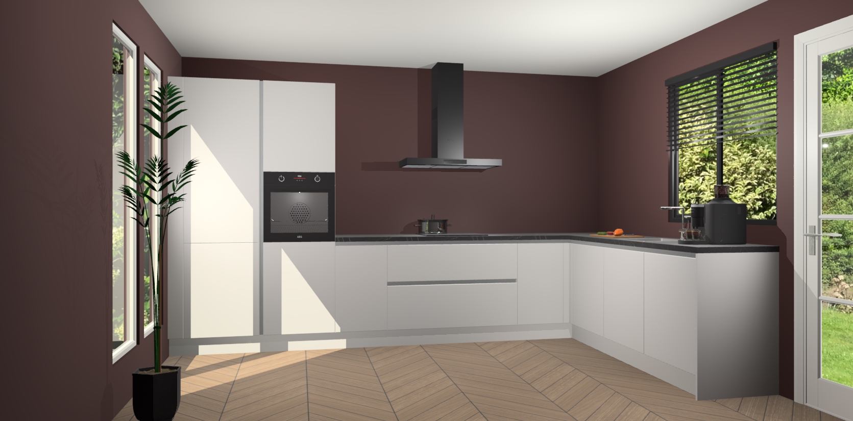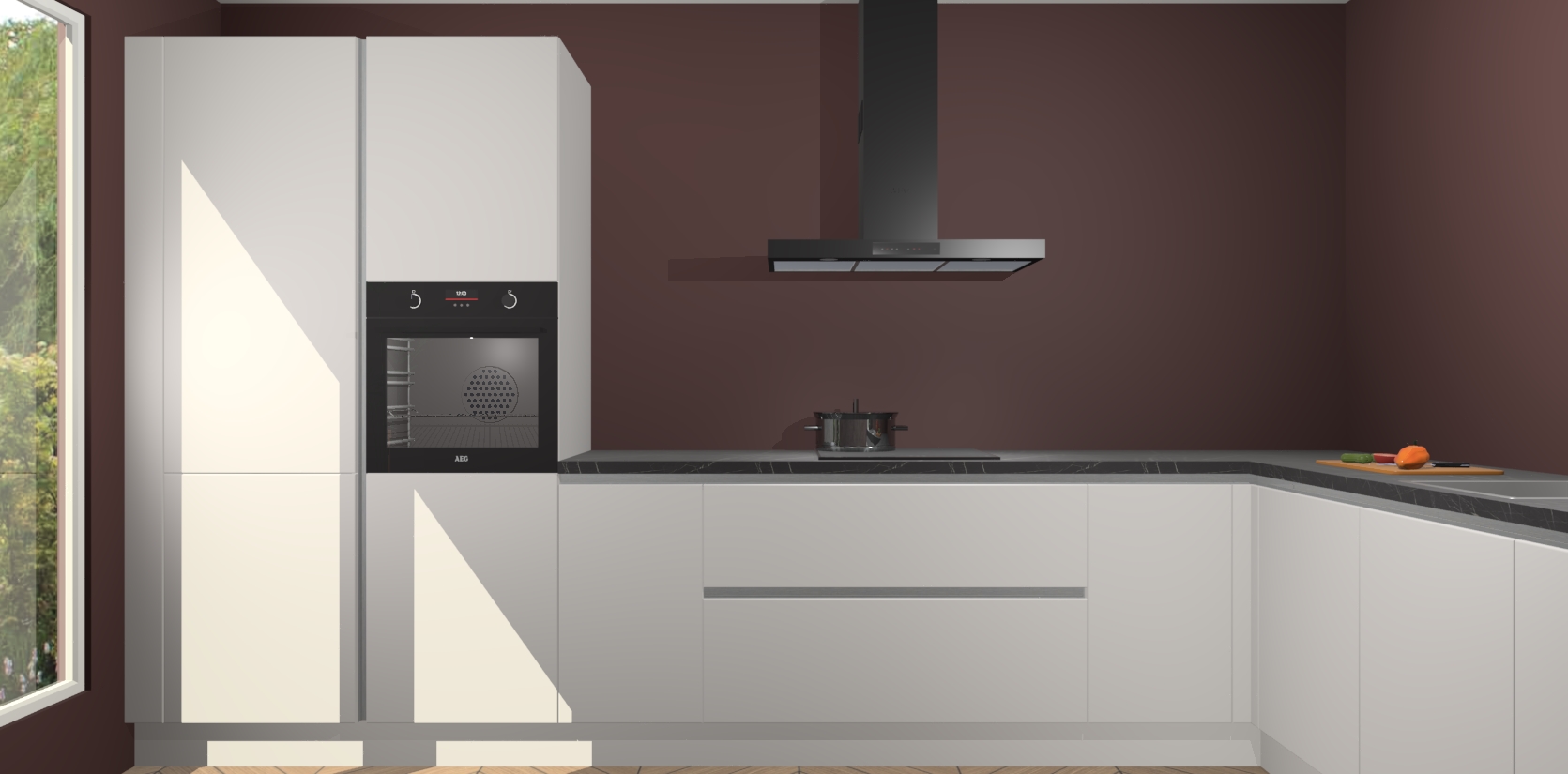 Met een modern, tijdloos design en ruime opslagruimte, zult u zich in no-time thuis voelen in uw nieuwe keuken. Uw leven wordt eenvoudiger met de soft-close deuren die voor het ultieme stille comfort zorgen - geen geluid dat u stoort terwijl u kookt. Ook is de keuken voorzien van 5 ingebouwde apparaten: een oven, inductie kookplaat, afzuigkap, vaatwasser en koelkast. Deze kunnen gemakkelijk na bestelling worden bijgewerkt naar AEG - waardoor uw luxe ervaring compleet is.