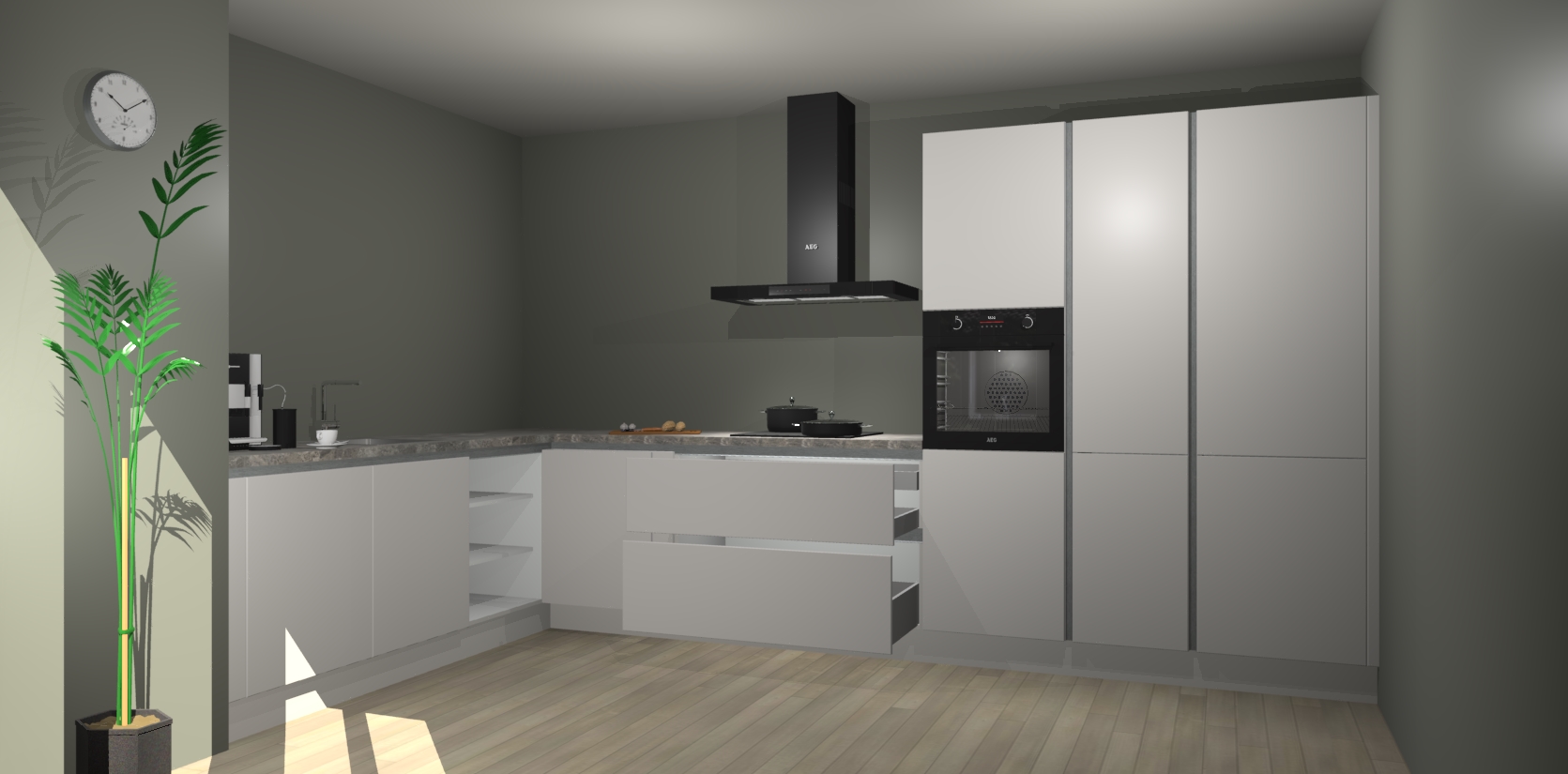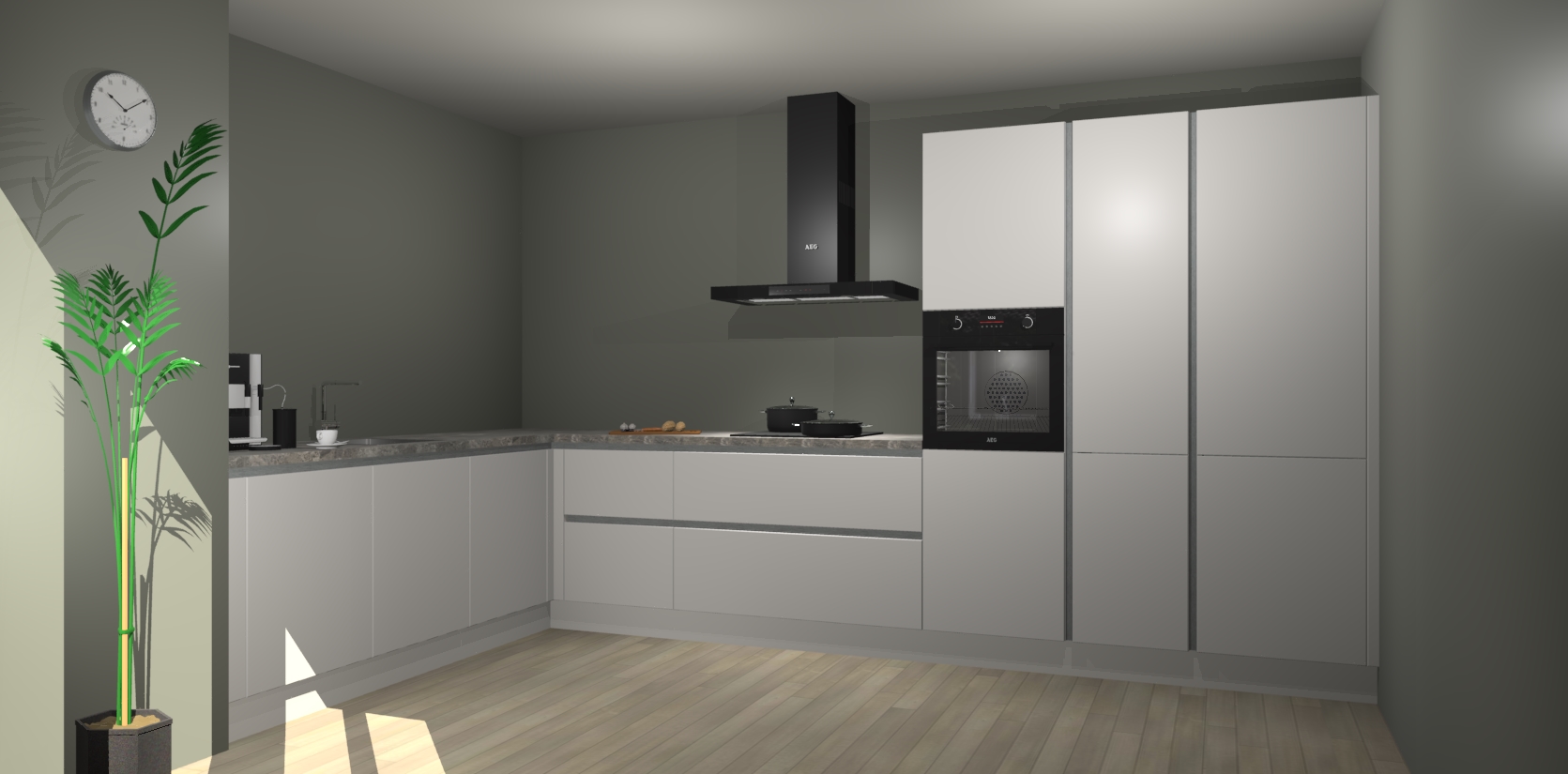 Welkom bij de zijdegrijze greeploze keuken Nuuk. Deze prachtige keuken zal de komende jaren het middelpunt van de belangstelling in uw huis zijn. Uitgerust met vijf inbouwapparaten komt u nooit kookgereedschap tekort.