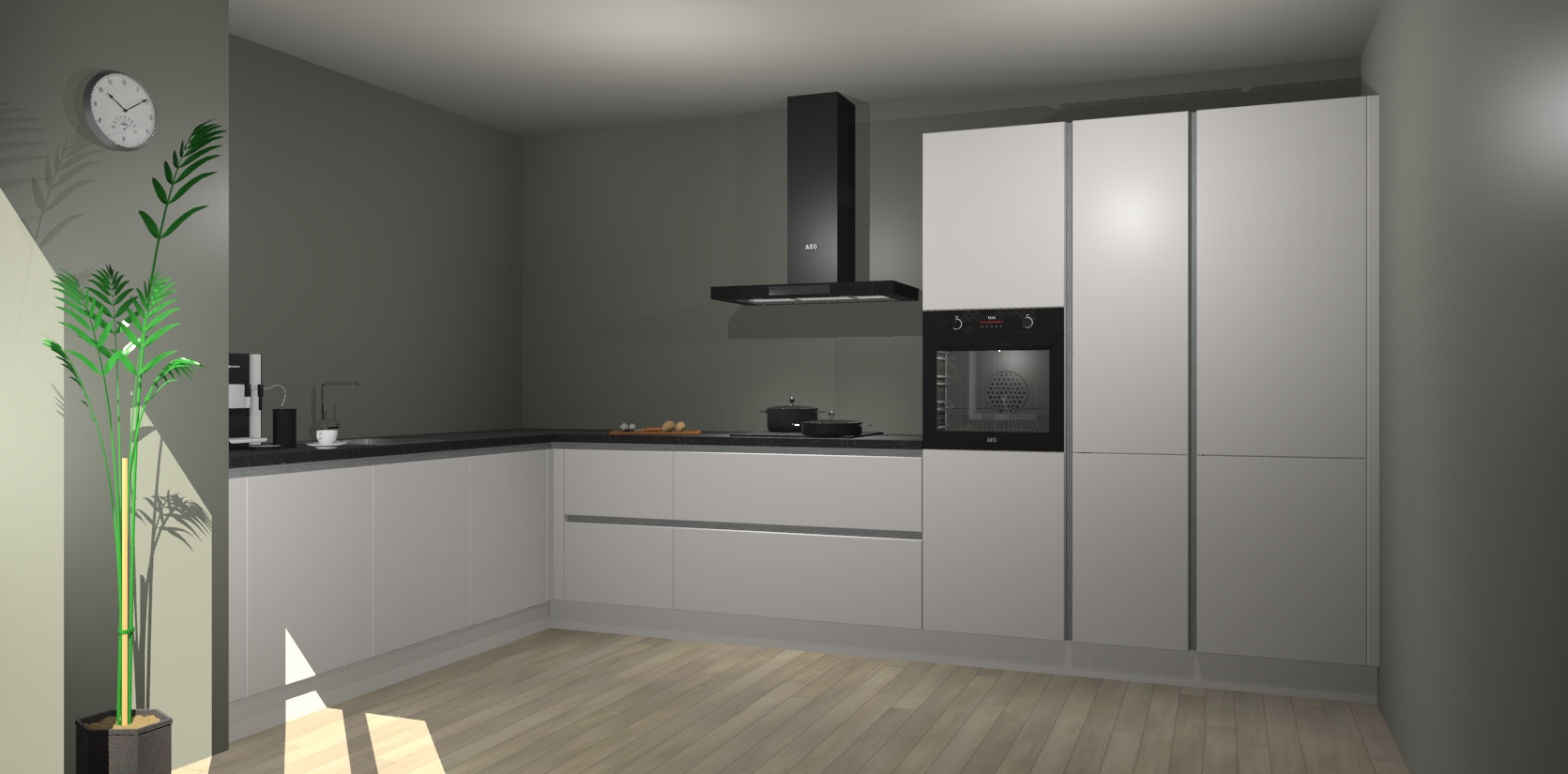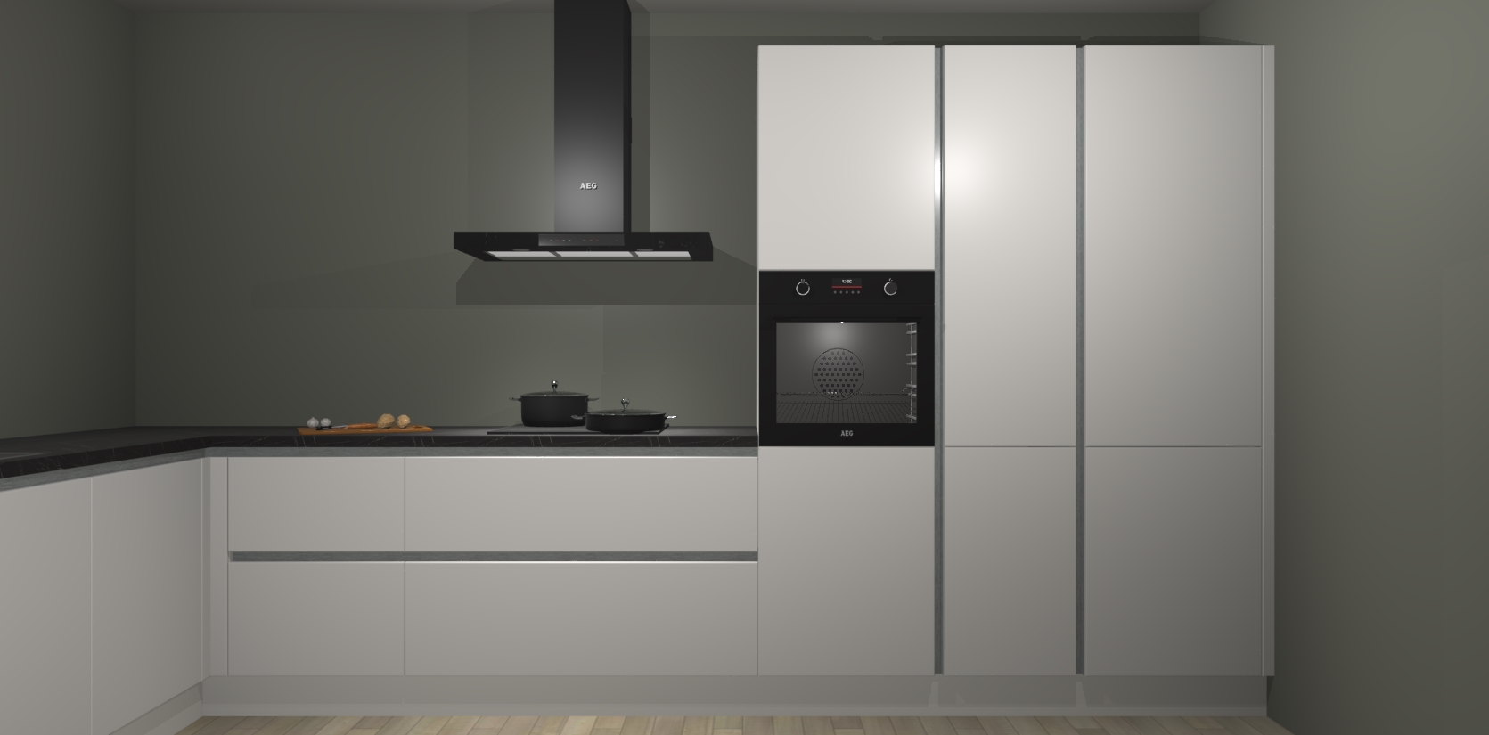 Welkom bij de zijdegrijze greeploze keuken Nuuk. Deze prachtige keuken zal de komende jaren het middelpunt van de belangstelling in uw huis zijn. Uitgerust met vijf inbouwapparaten komt u nooit kookgereedschap tekort.