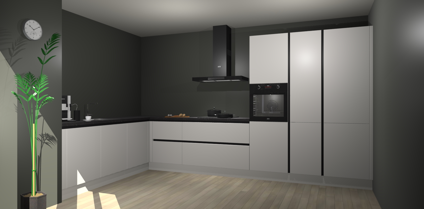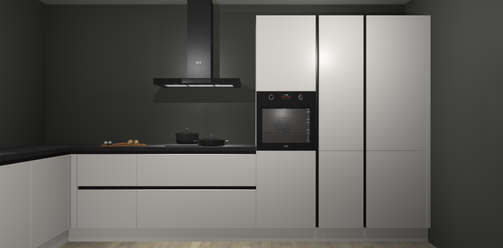 Welkom bij de zijdegrijze greeploze keuken Nuuk. Deze prachtige keuken zal de komende jaren het middelpunt van de belangstelling in uw huis zijn. Uitgerust met vijf inbouwapparaten komt u nooit kookgereedschap tekort.