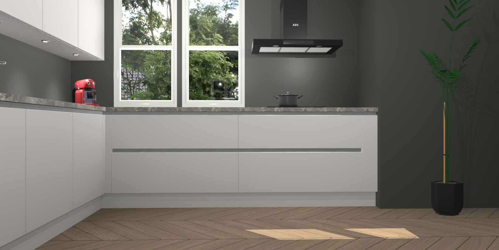 Inclusief plinten, stelpoten en werkblad