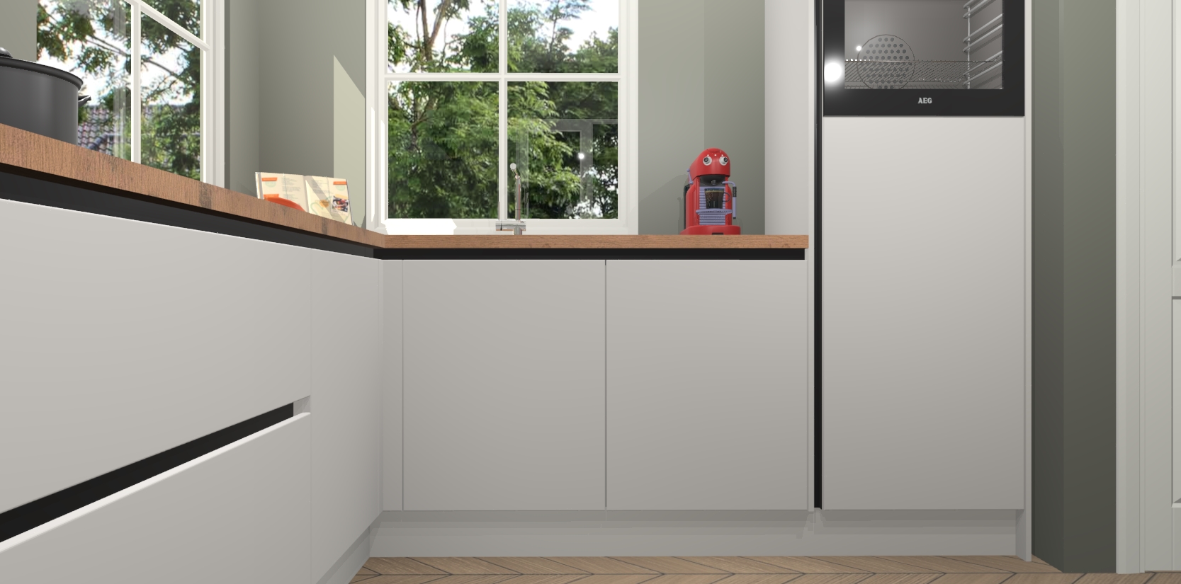De Zijdegrijze greeploze keuken Pai bevat vijf essentiële inbouwapparaten - een oven, inductiekookplaat, afzuigkap, vaatwasser en koelkast - zodat u er na levering meteen in kunt. Voor de slimme kopers die weten dat apparaten vaak het verschil kunnen maken tussen functioneel en luxueus, bieden we eenvoudige upgradeopties naar AEG, van oven naar combimagnetron na bestelling of naar een kookplaat met geïntrigeerde afzuiging. En met onze vaste lage prijs en snelle levering binnen zeven weken vanaf de orderbevestiging hoeft u zich geen zorgen te maken over verborgen kosten of lange levertijden die uw droomkeuken kunnen vertragen.