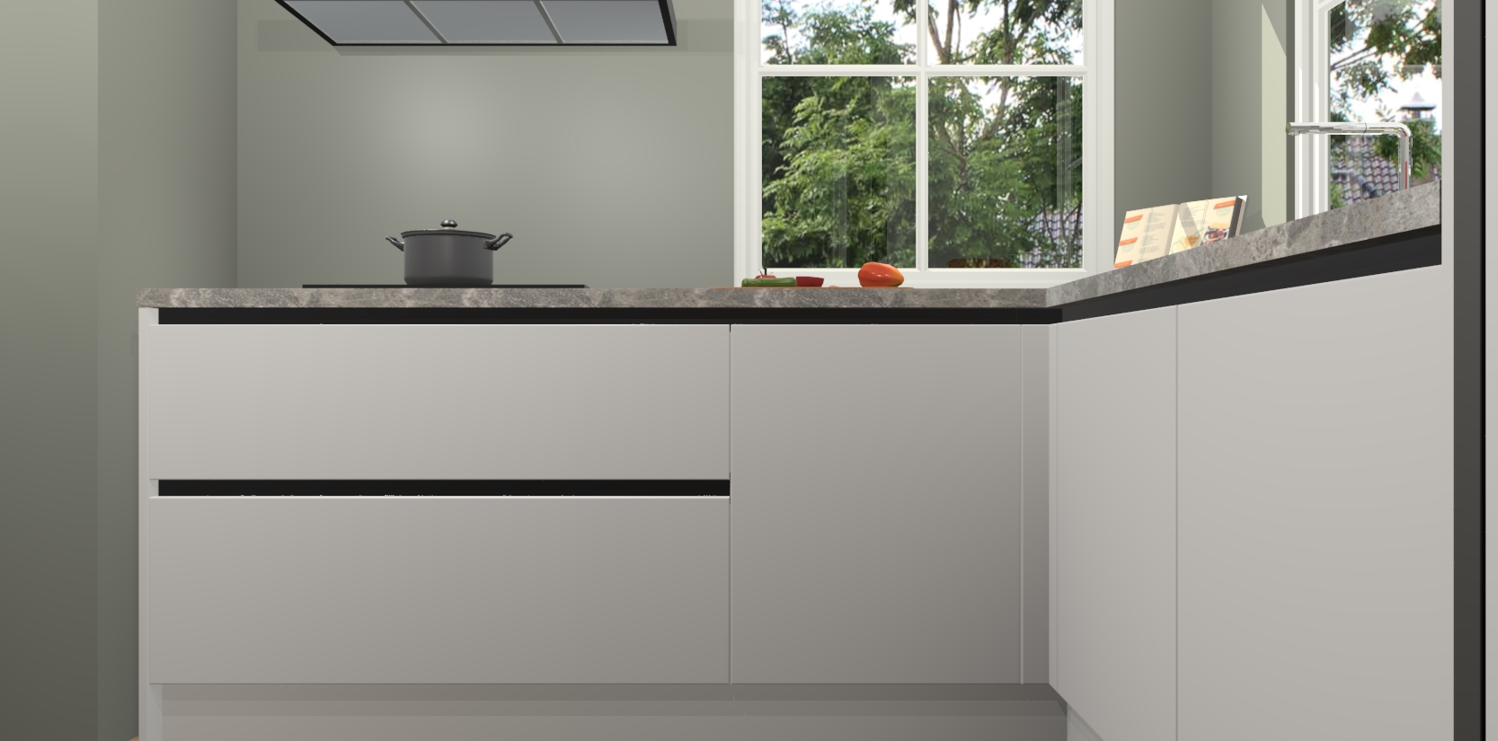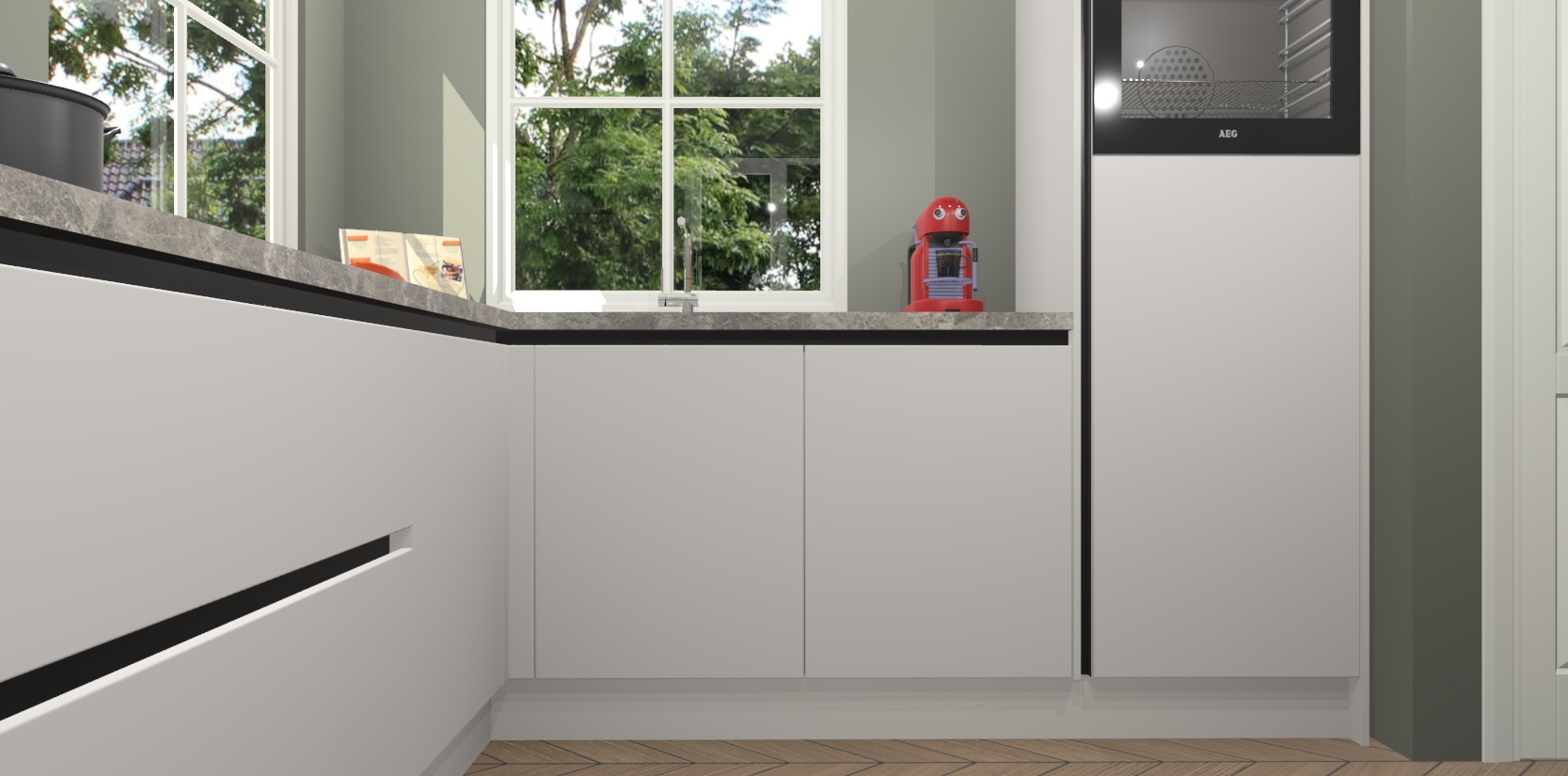 De Zijdegrijze greeploze keuken Pai bevat vijf essentiële inbouwapparaten - een oven, inductiekookplaat, afzuigkap, vaatwasser en koelkast - zodat u er na levering meteen in kunt. Voor de slimme kopers die weten dat apparaten vaak het verschil kunnen maken tussen functioneel en luxueus, bieden we eenvoudige upgradeopties naar AEG, van oven naar combimagnetron na bestelling of naar een kookplaat met geïntrigeerde afzuiging. En met onze vaste lage prijs en snelle levering binnen zeven weken vanaf de orderbevestiging hoeft u zich geen zorgen te maken over verborgen kosten of lange levertijden die uw droomkeuken kunnen vertragen.