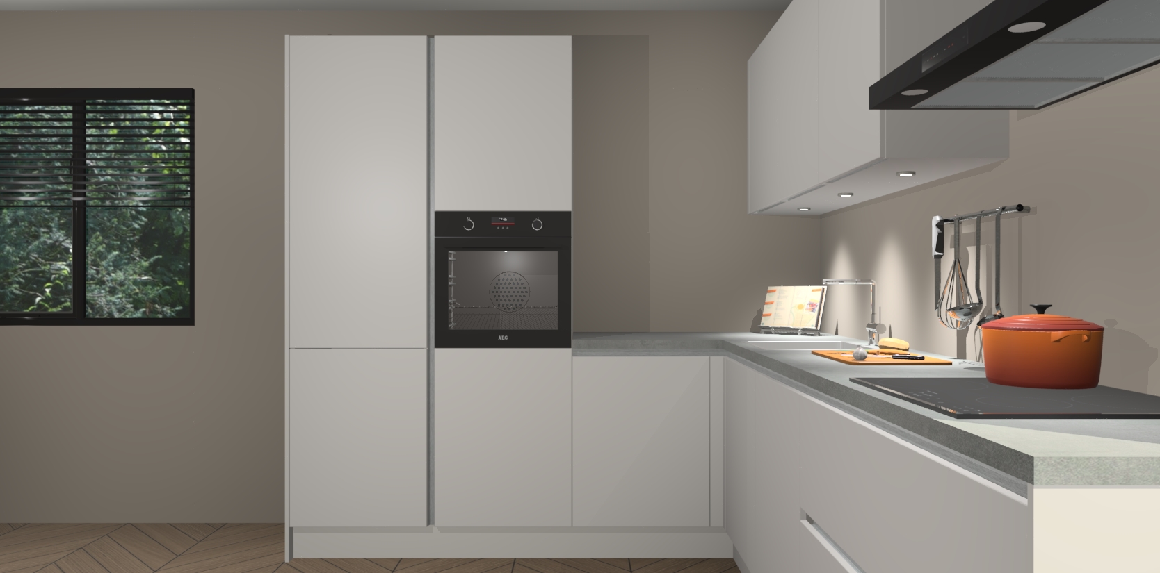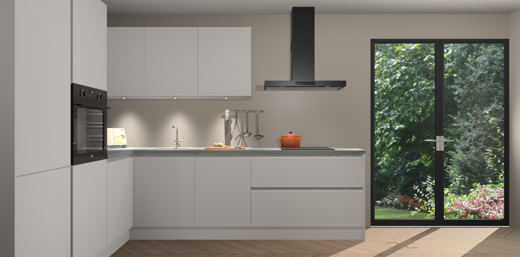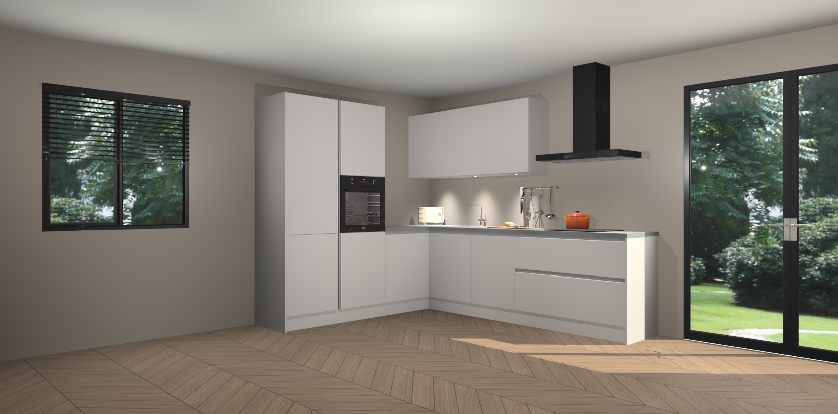 Maak kennis met de zijdegrijze greeploze keuken Parla - de perfecte aanvulling voor uw moderne keuken! Ervaar tijdloos design, elegantie en een chique uitstraling met onze zwarte handgrepen, soft-close deuren en veel opbergruimte. Dit alles wordt aangeboden tegen een vaste lage prijs voor ongeëvenaarde Duitse keukenkwaliteit!