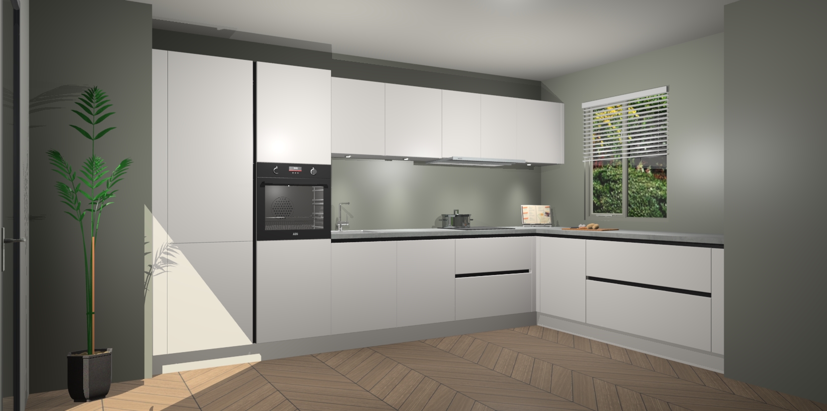 Verwelkom de natuurlijke warmte van de Zijdegrijze greeploze keuken Petten in uw huis. Deze prachtige hoekkeuken met zijn moderne design en warme houten look geeft u meer dan genoeg opbergruimte om uw comfortabel te voelen in uw keuken. Geniet van soft-close deuren die al uw gasten het gevoel zullen geven dat ze zich in een luxueuze ruimte bevinden.
