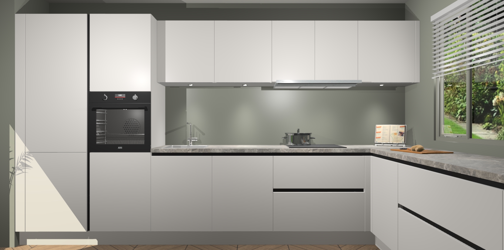 Verwelkom de natuurlijke warmte van de Zijdegrijze greeploze keuken Petten in uw huis. Deze prachtige hoekkeuken met zijn moderne design en warme houten look geeft u meer dan genoeg opbergruimte om uw comfortabel te voelen in uw keuken. Geniet van soft-close deuren die al uw gasten het gevoel zullen geven dat ze zich in een luxueuze ruimte bevinden.