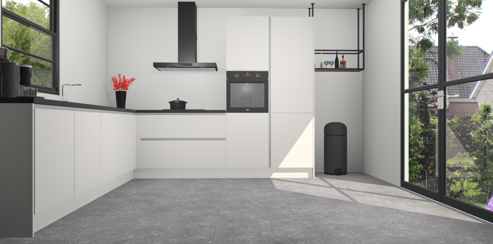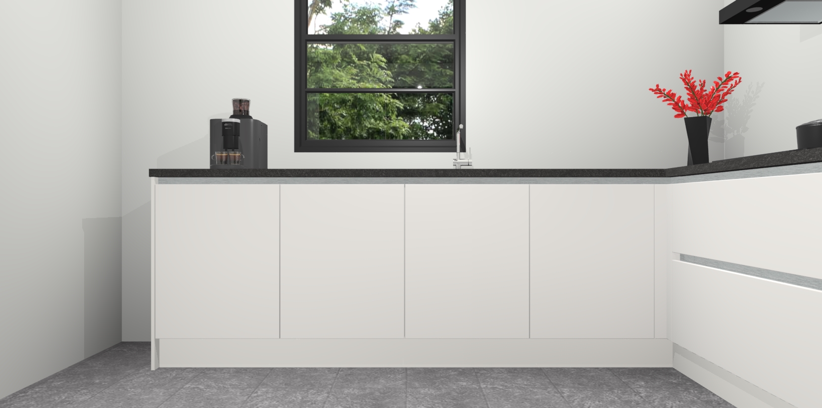 De Zijdegrijze greeploze keuken Porto heeft 5 ingebouwde apparaten - een oven, inductiekookplaat, afzuigkap, vaatwasser en koelkast - waarmee u in een handomdraai heerlijke gerechten bereidt. Soft-close deuren zorgen voor nog meer functionaliteit en gemak. En dit alles voor een onverslaanbaar vaste prijs. En als u nu bestelt, duurt de levering maar 7 weken! Wat nog ongelooflijker is, is dat onze kasten voor gemonteerd worden geleverd.