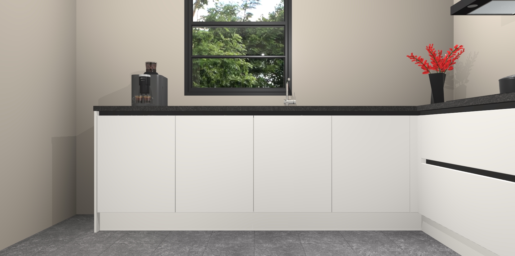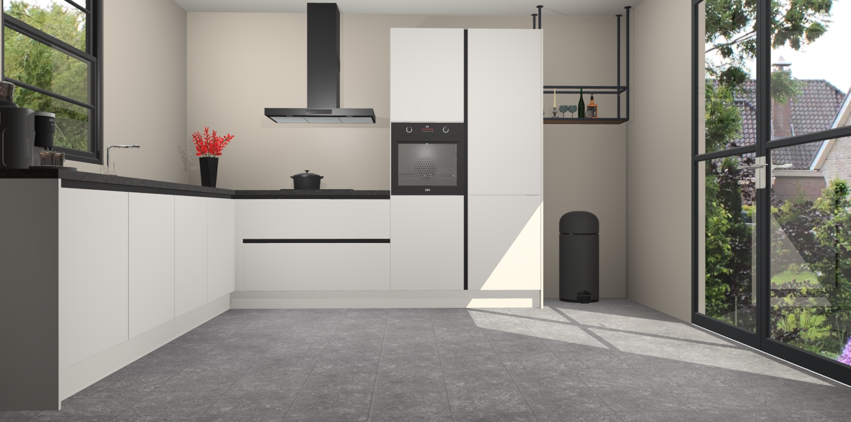 De Zijdegrijze greeploze keuken Porto heeft 5 ingebouwde apparaten - een oven, inductiekookplaat, afzuigkap, vaatwasser en koelkast - waarmee u in een handomdraai heerlijke gerechten bereidt. Soft-close deuren zorgen voor nog meer functionaliteit en gemak. En dit alles voor een onverslaanbaar vaste prijs. En als u nu bestelt, duurt de levering maar 7 weken! Wat nog ongelooflijker is, is dat onze kasten voor gemonteerd worden geleverd.