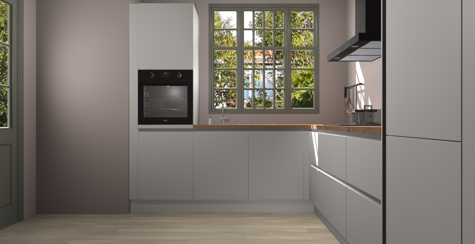 Met een modern, tijdloos design en ruime opslagruimte, zult u zich in no-time thuis voelen in uw nieuwe keuken. Uw leven wordt eenvoudiger met de soft-close deuren die voor het ultieme stille comfort zorgen - geen geluid dat u stoort terwijl u kookt. Ook is de keuken voorzien van 5 ingebouwde apparaten: een oven, inductie kookplaat, afzuigkap, vaatwasser en koelkast. Deze kunnen gemakkelijk na bestelling worden bijgewerkt naar AEG - waardoor uw luxe ervaring compleet is.