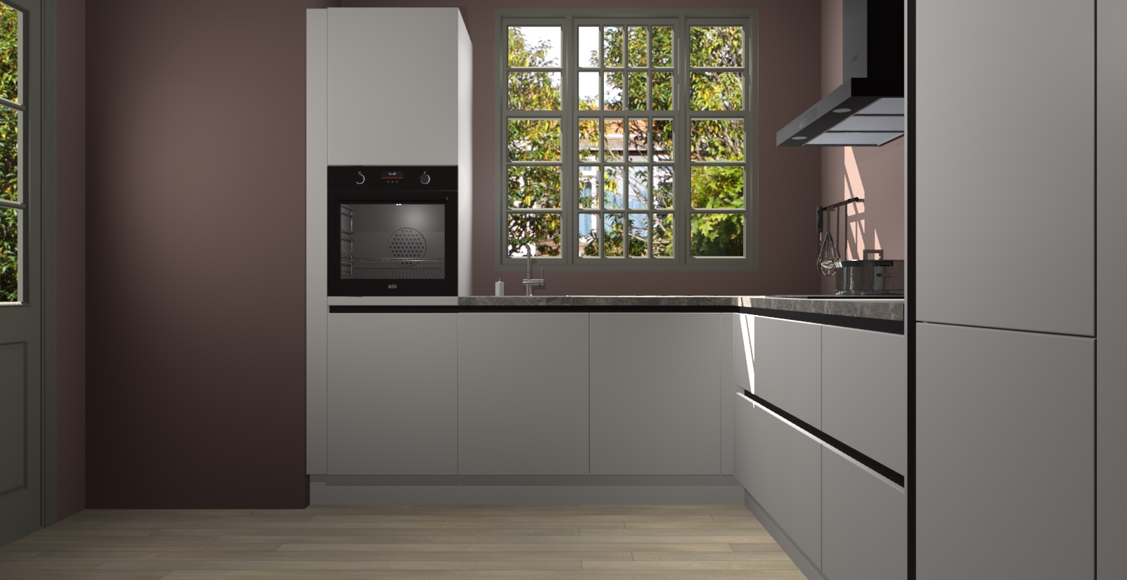 Met een modern, tijdloos design en ruime opslagruimte, zult u zich in no-time thuis voelen in uw nieuwe keuken. Uw leven wordt eenvoudiger met de soft-close deuren die voor het ultieme stille comfort zorgen - geen geluid dat u stoort terwijl u kookt. Ook is de keuken voorzien van 5 ingebouwde apparaten: een oven, inductie kookplaat, afzuigkap, vaatwasser en koelkast. Deze kunnen gemakkelijk na bestelling worden bijgewerkt naar AEG - waardoor uw luxe ervaring compleet is.