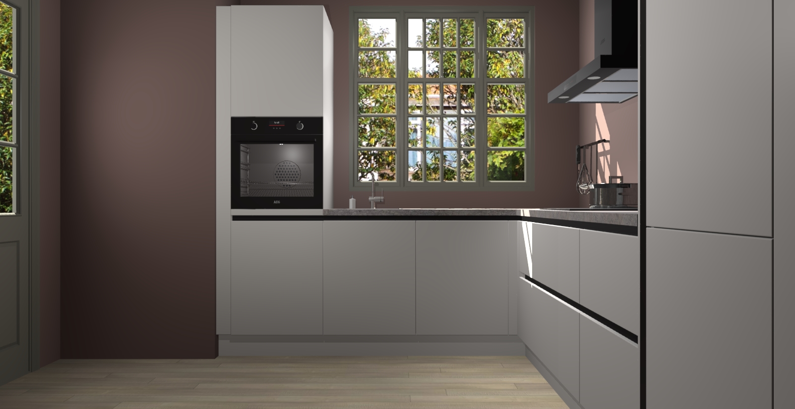 Met een modern, tijdloos design en ruime opslagruimte, zult u zich in no-time thuis voelen in uw nieuwe keuken. Uw leven wordt eenvoudiger met de soft-close deuren die voor het ultieme stille comfort zorgen - geen geluid dat u stoort terwijl u kookt. Ook is de keuken voorzien van 5 ingebouwde apparaten: een oven, inductie kookplaat, afzuigkap, vaatwasser en koelkast. Deze kunnen gemakkelijk na bestelling worden bijgewerkt naar AEG - waardoor uw luxe ervaring compleet is.