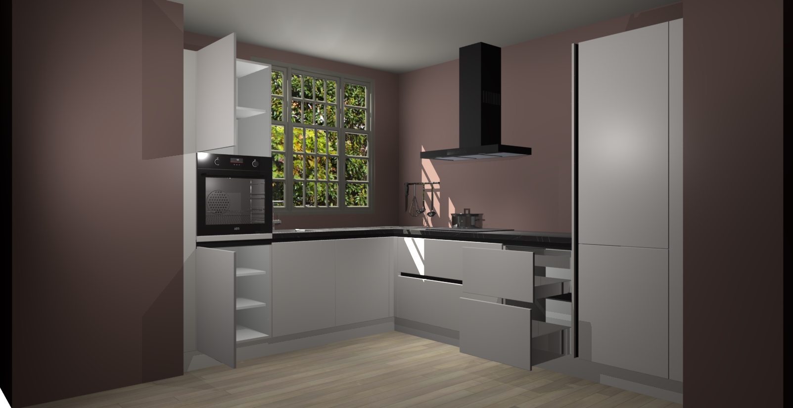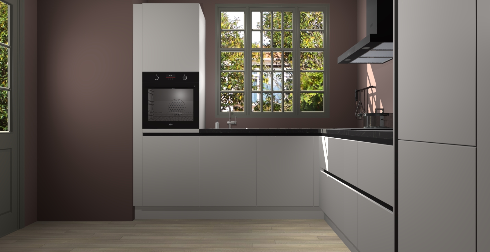 Met een modern, tijdloos design en ruime opslagruimte, zult u zich in no-time thuis voelen in uw nieuwe keuken. Uw leven wordt eenvoudiger met de soft-close deuren die voor het ultieme stille comfort zorgen - geen geluid dat u stoort terwijl u kookt. Ook is de keuken voorzien van 5 ingebouwde apparaten: een oven, inductie kookplaat, afzuigkap, vaatwasser en koelkast. Deze kunnen gemakkelijk na bestelling worden bijgewerkt naar AEG - waardoor uw luxe ervaring compleet is.