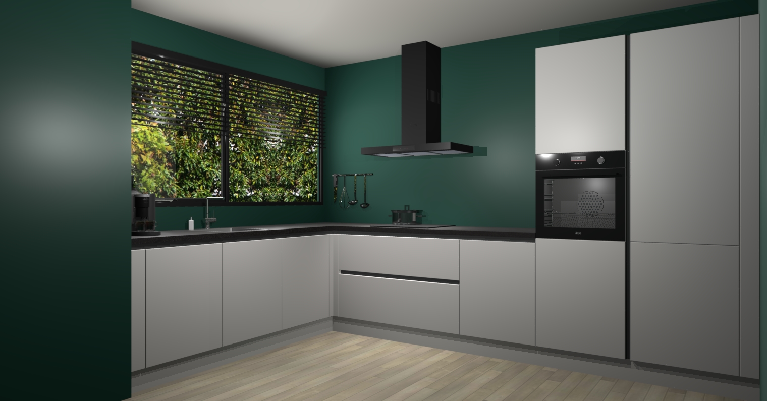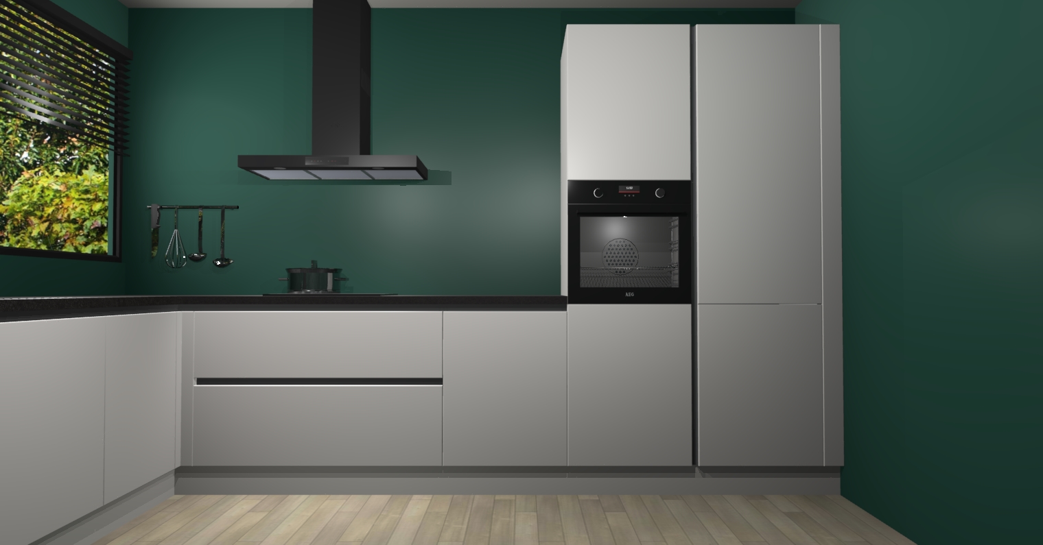 Met een modern, tijdloos design en ruime opslagruimte, zult u zich in no-time thuis voelen in uw nieuwe keuken. Uw leven wordt eenvoudiger met de soft-close deuren die voor het ultieme stille comfort zorgen - geen geluid dat u stoort terwijl u kookt. Ook is de keuken voorzien van 5 ingebouwde apparaten: een oven, inductie kookplaat, afzuigkap, vaatwasser en koelkast. Deze kunnen gemakkelijk na bestelling worden bijgewerkt naar AEG - waardoor uw luxe ervaring compleet is.