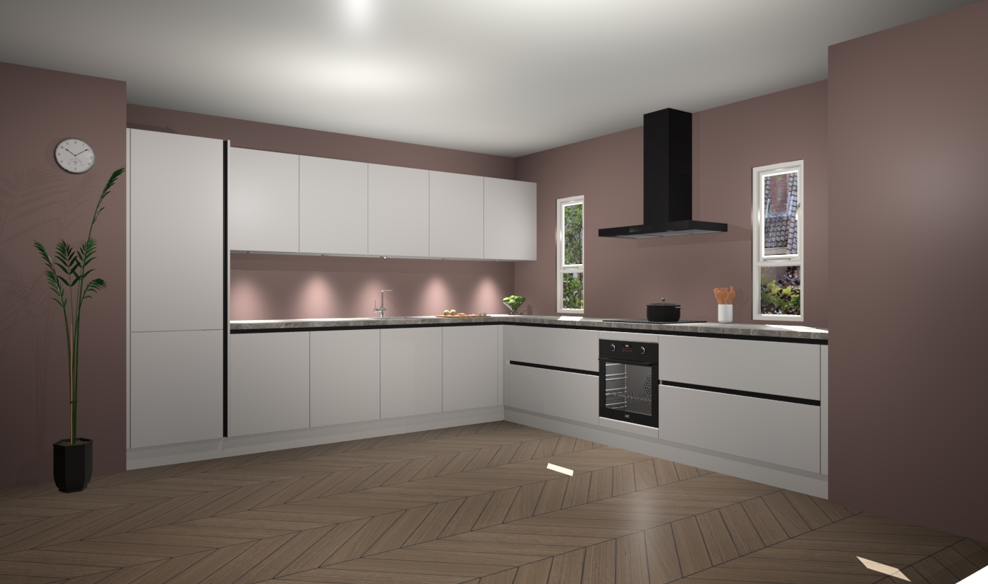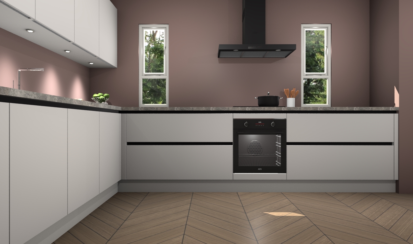 De zijdegrijze greeploze keuken is een ideale hoekkeuken en heeft alle functies en apparatuur die u maar nodig kunt hebben. Bij de bestelling krijgt u een oven, inductiekookplaat, afzuigkap, vaatwasser en koelkast - deze kunnen desgewenst eenvoudig worden uitgebreid naar AEG na bestellen. Elke kast wordt ook voor gemonteerd geleverd met soft close deuren die jarenlang gebruik beloven. Stelt u zich voor dat u geen gedoe heeft met vervelende montage - vanaf het moment dat u uw bestelling plaats, duurt het slechts 7 weken voor het bij u thuis geleverd wordt.