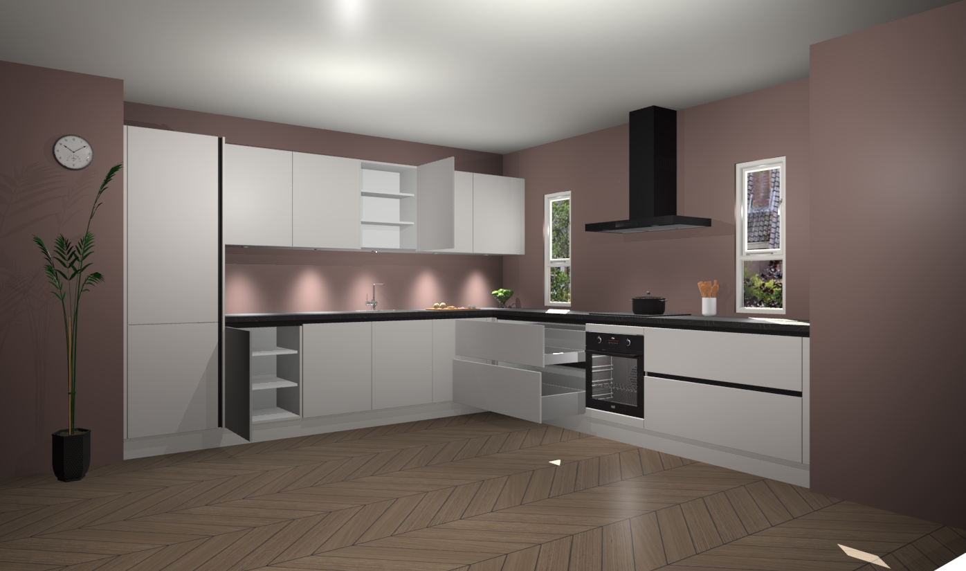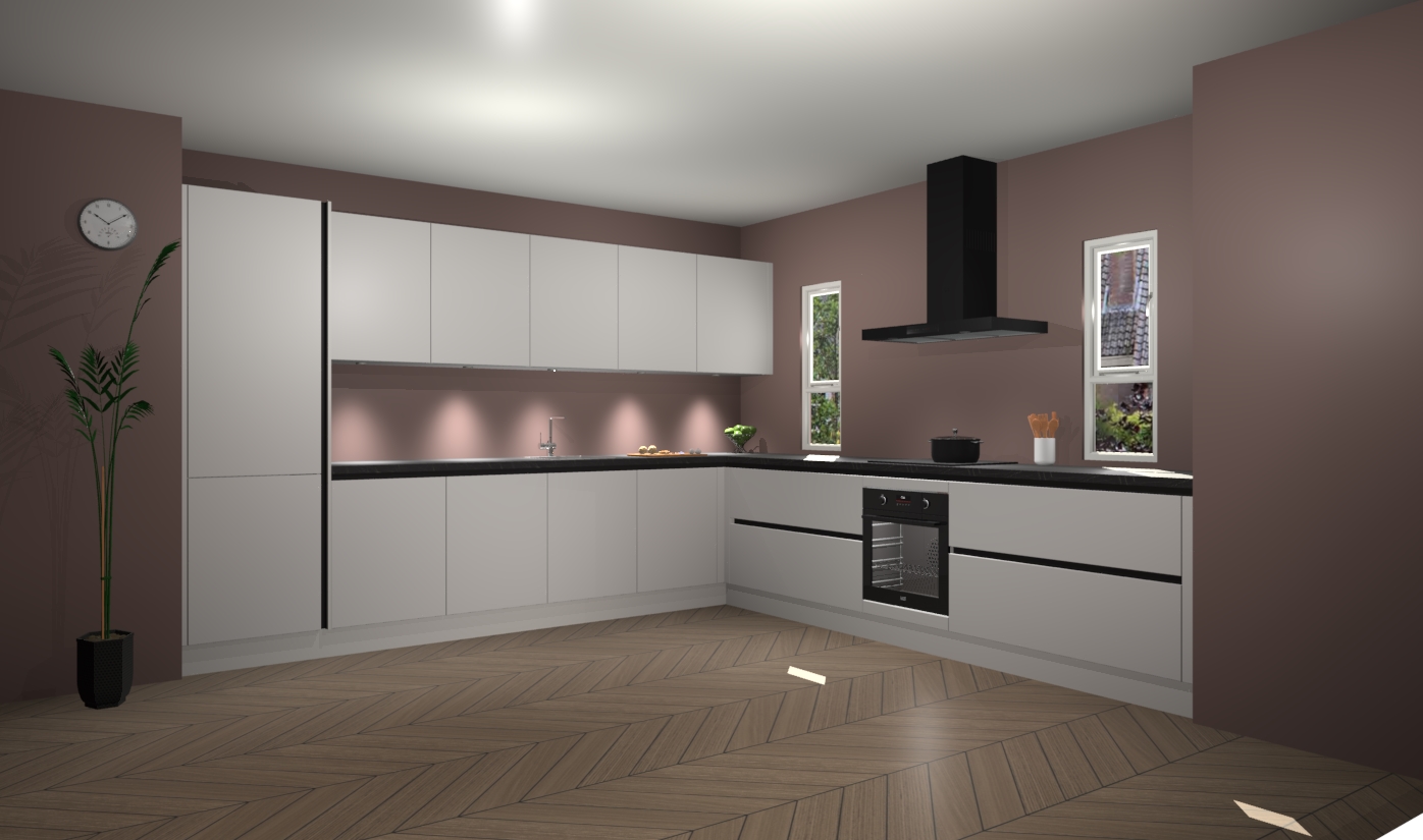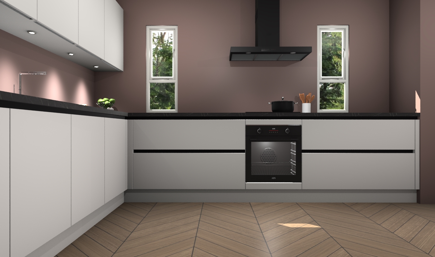 De zijdegrijze greeploze keuken is een ideale hoekkeuken en heeft alle functies en apparatuur die u maar nodig kunt hebben. Bij de bestelling krijgt u een oven, inductiekookplaat, afzuigkap, vaatwasser en koelkast - deze kunnen desgewenst eenvoudig worden uitgebreid naar AEG na bestellen. Elke kast wordt ook voor gemonteerd geleverd met soft close deuren die jarenlang gebruik beloven. Stelt u zich voor dat u geen gedoe heeft met vervelende montage - vanaf het moment dat u uw bestelling plaats, duurt het slechts 7 weken voor het bij u thuis geleverd wordt.