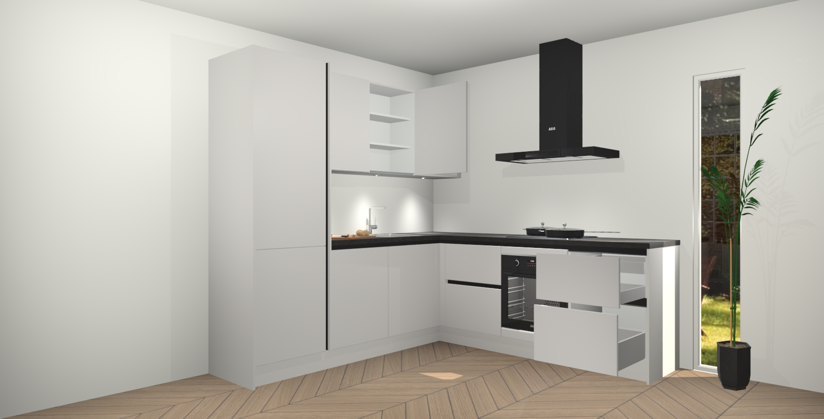 Inclusief plinten, stelpoten en werkblad