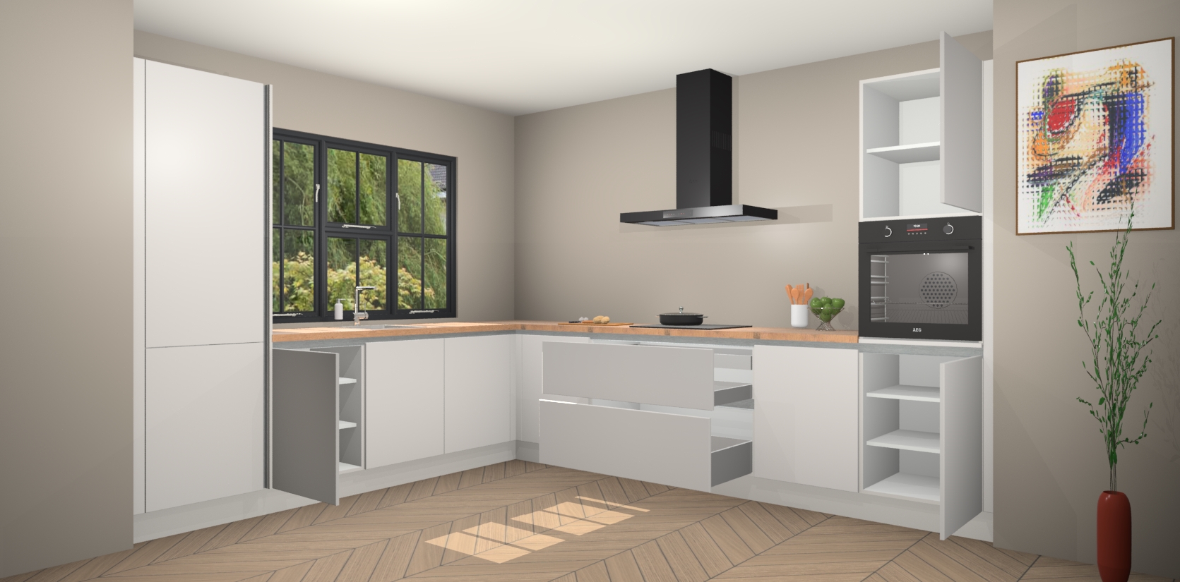 In deze box zijn alle kleuren verzameld van de deuren en werkbladen. Vraag de gratis kleurenbox aan en kijk thuis rustig verder!