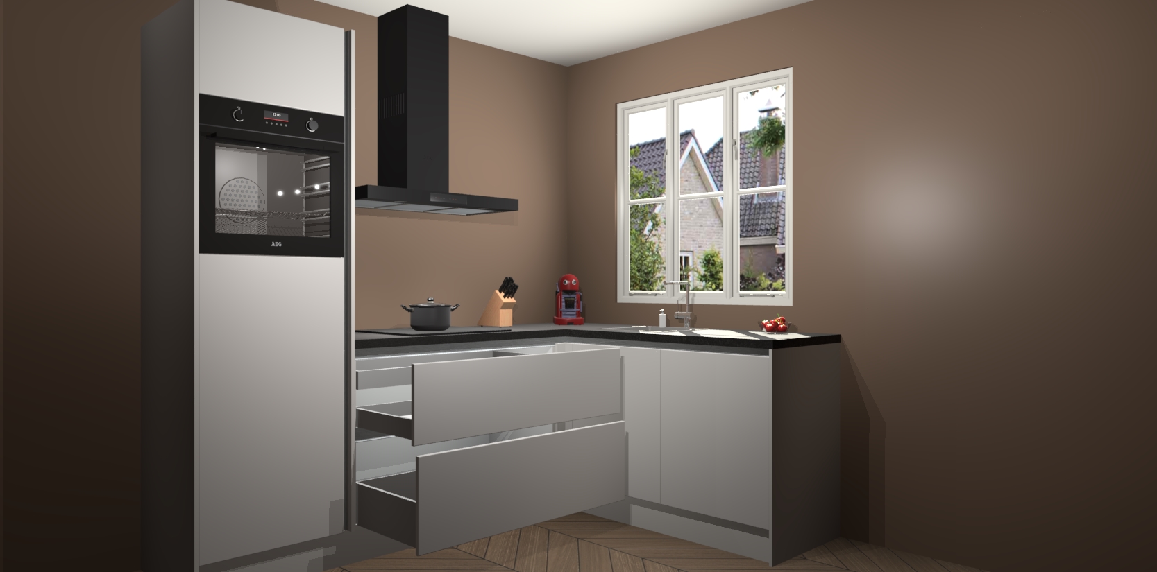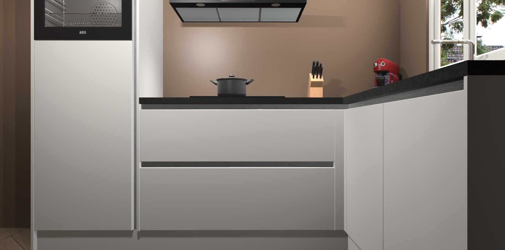 Dit model biedt u voldoende opbergruimte en vijf ingebouwde apparaten: een oven, inductiekookplaat, afzuigkap, vaatwasser en koelkast. Deze apparaten kunnen gemakkelijk worden geüpgrade naar AEG nadat u besteld heeft. De verschillende laden en kastjes bevatten softclose-deuren waardoor ze gezellig dichtvallen met een geruststellend helemaal geruisloos geluid. En dat is nog niet alles! We garanderen ook dat de prijs altijd laag blijft - dus haal nu uw Zijdegrijze greeploze keuken Victoria terwijl het kan.