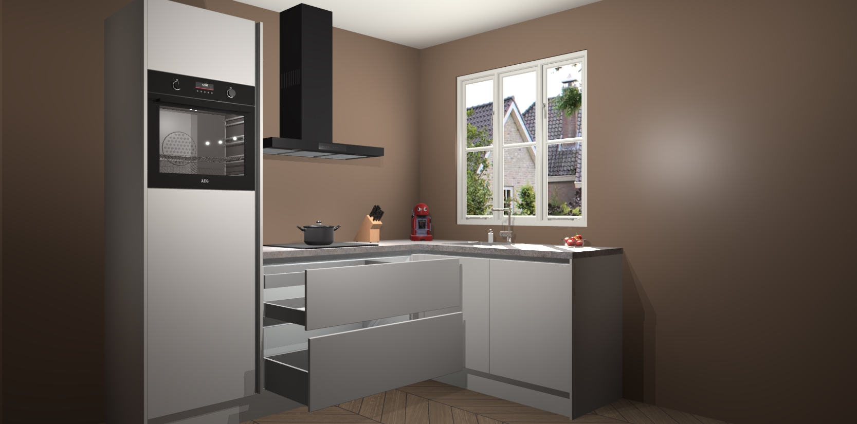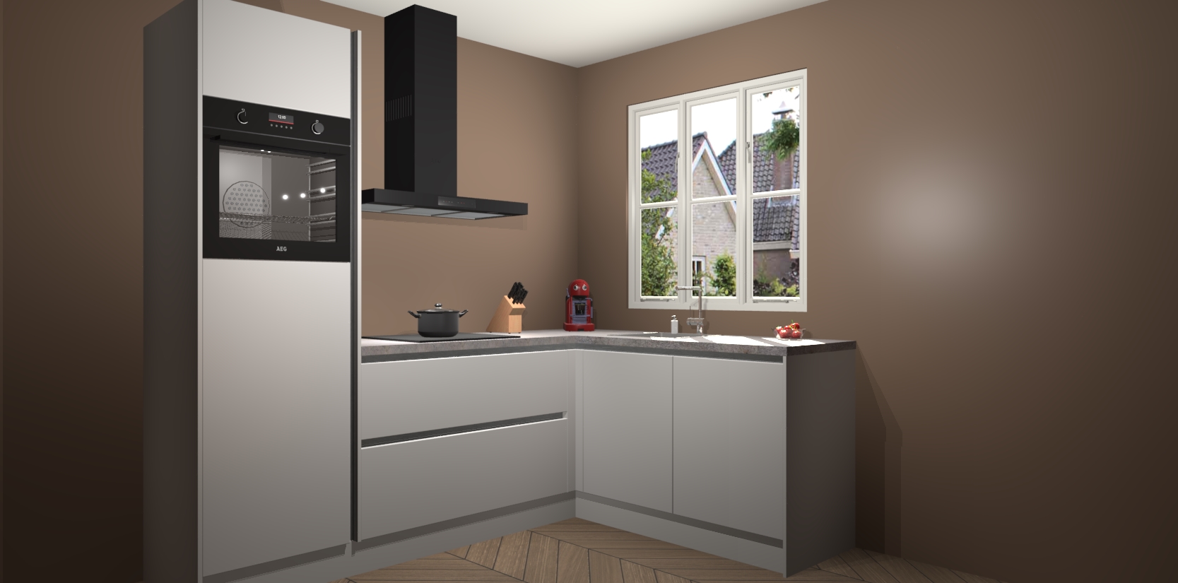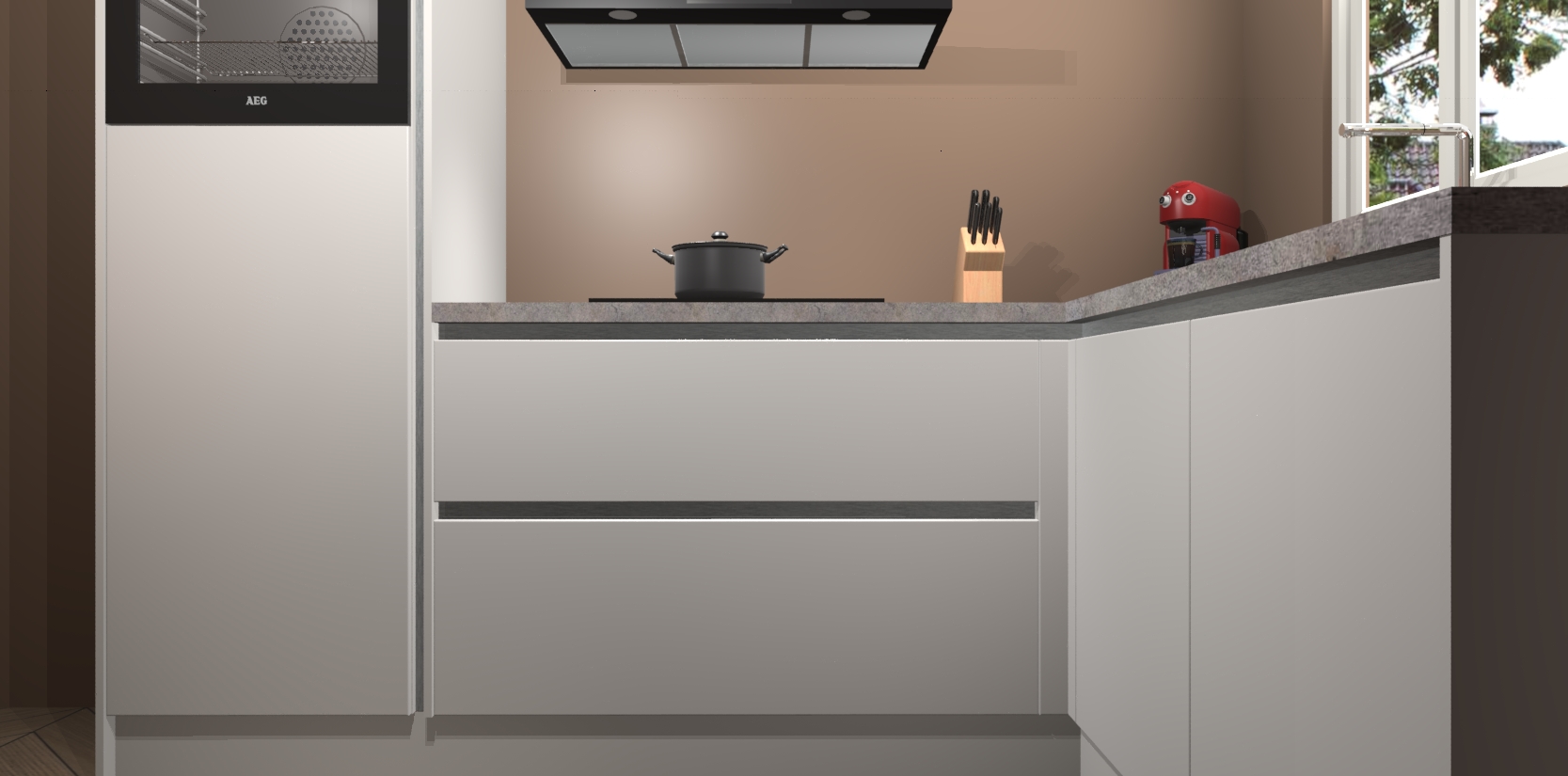 Dit model biedt u voldoende opbergruimte en vijf ingebouwde apparaten: een oven, inductiekookplaat, afzuigkap, vaatwasser en koelkast. Deze apparaten kunnen gemakkelijk worden geüpgrade naar AEG nadat u besteld heeft. De verschillende laden en kastjes bevatten softclose-deuren waardoor ze gezellig dichtvallen met een geruststellend helemaal geruisloos geluid. En dat is nog niet alles! We garanderen ook dat de prijs altijd laag blijft - dus haal nu uw Zijdegrijze greeploze keuken Victoria terwijl het kan.