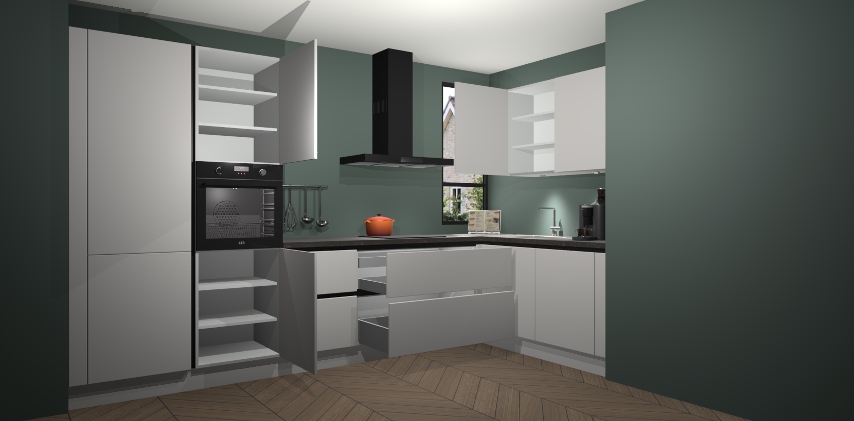 Welkom in uw nieuwe moderne keuken! Laat ons u voorstellen aan de Zijdegrijze greeploze keuken Vlaanderen . Deze prachtige hoekkeuken straalt exclusiviteit en luxe uit als geen ander. Het strakke design, de tijdloze kleuren en het greeploze model maken van deze keuken een moderne klassieker. En met voldoende opbergruimte heeft deze keuken echt voor ieder wat wils.