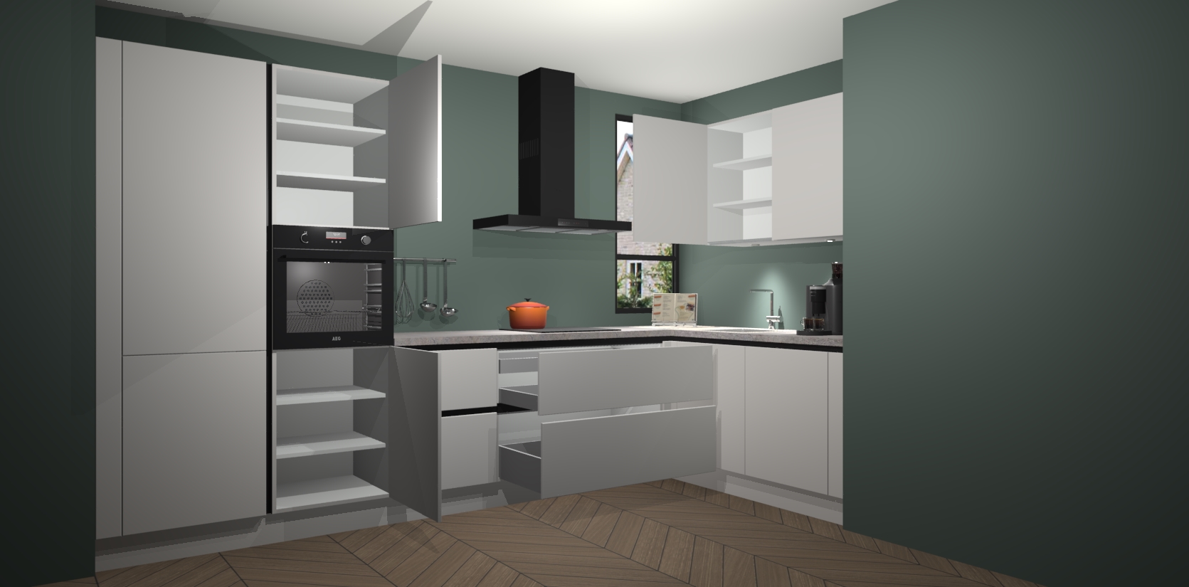 Welkom in uw nieuwe moderne keuken! Laat ons u voorstellen aan de Zijdegrijze greeploze keuken Vlaanderen . Deze prachtige hoekkeuken straalt exclusiviteit en luxe uit als geen ander. Het strakke design, de tijdloze kleuren en het greeploze model maken van deze keuken een moderne klassieker. En met voldoende opbergruimte heeft deze keuken echt voor ieder wat wils.