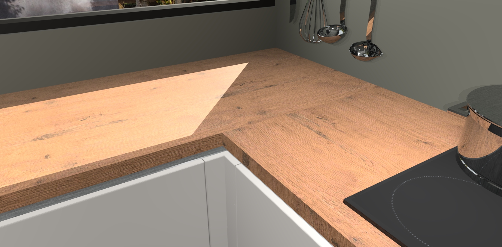 - Bij een hoekwerkblad zijn de hoeken in gevreesd en op maat gemaakt