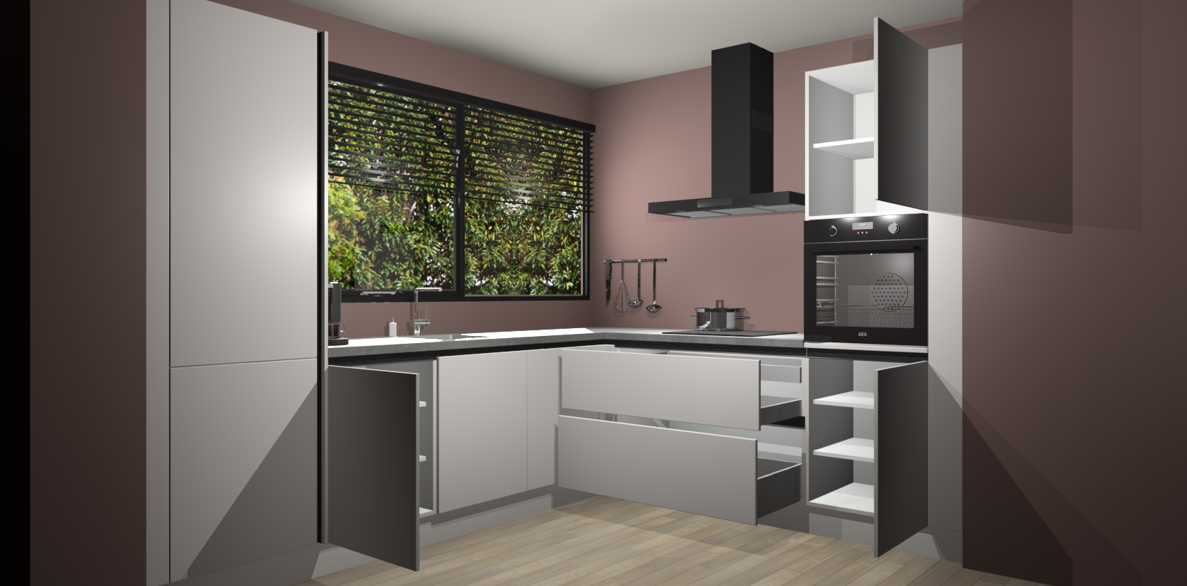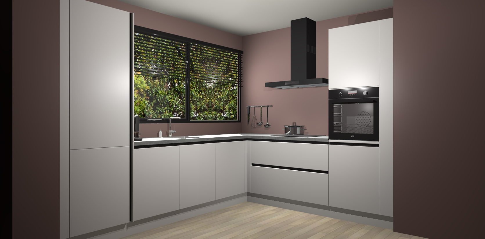 Met een modern, tijdloos design en ruime opslagruimte, zult u zich in no-time thuis voelen in uw nieuwe keuken. Uw leven wordt eenvoudiger met de soft-close deuren die voor het ultieme stille comfort zorgen - geen geluid dat u stoort terwijl u kookt. Ook is de keuken voorzien van 5 ingebouwde apparaten: een oven, inductie kookplaat, afzuigkap, vaatwasser en koelkast. Deze kunnen gemakkelijk na bestelling worden bijgewerkt naar AEG - waardoor uw luxe ervaring compleet is.