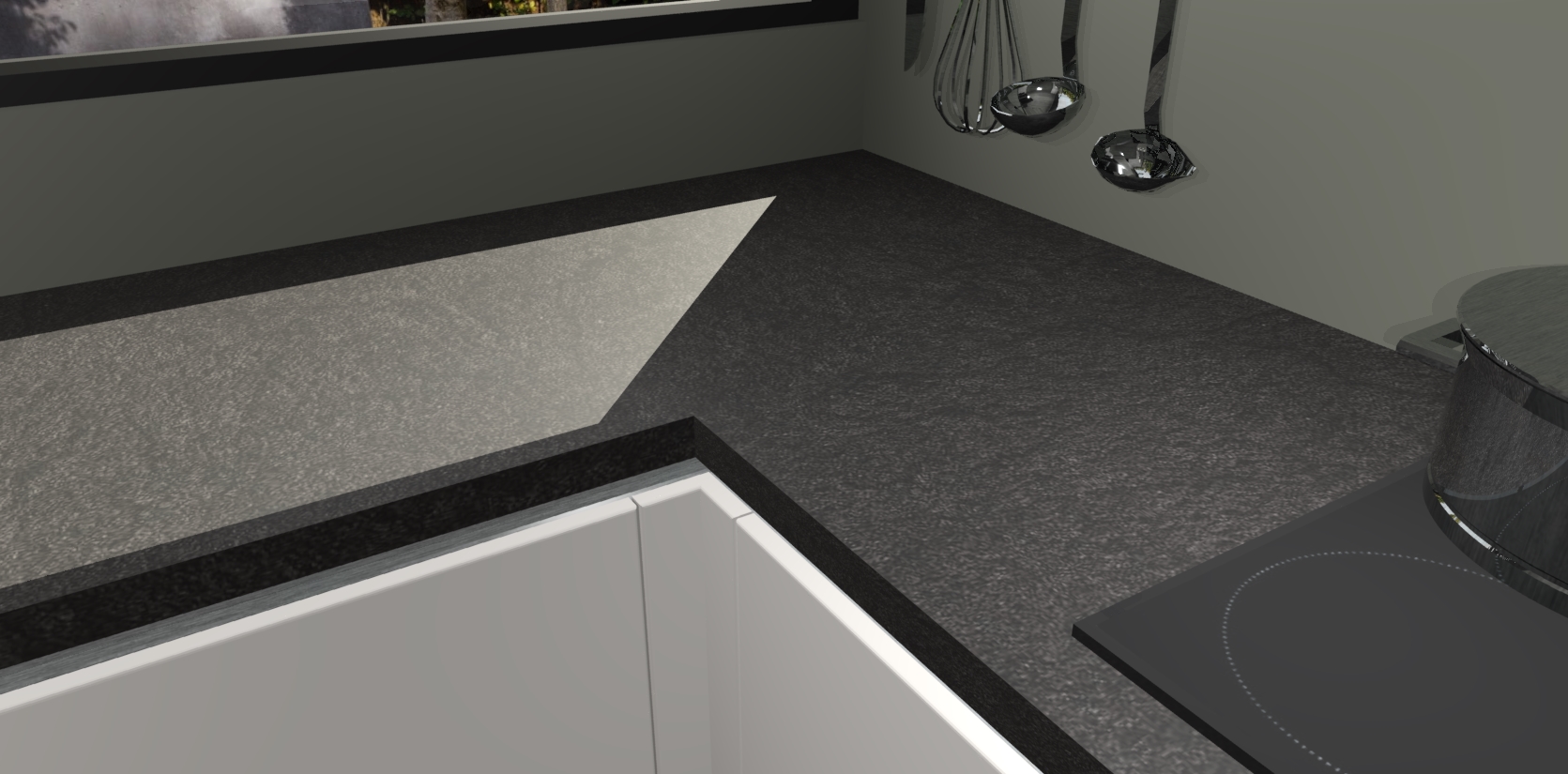 - Bij een hoekwerkblad zijn de hoeken in gevreesd en op maat gemaakt