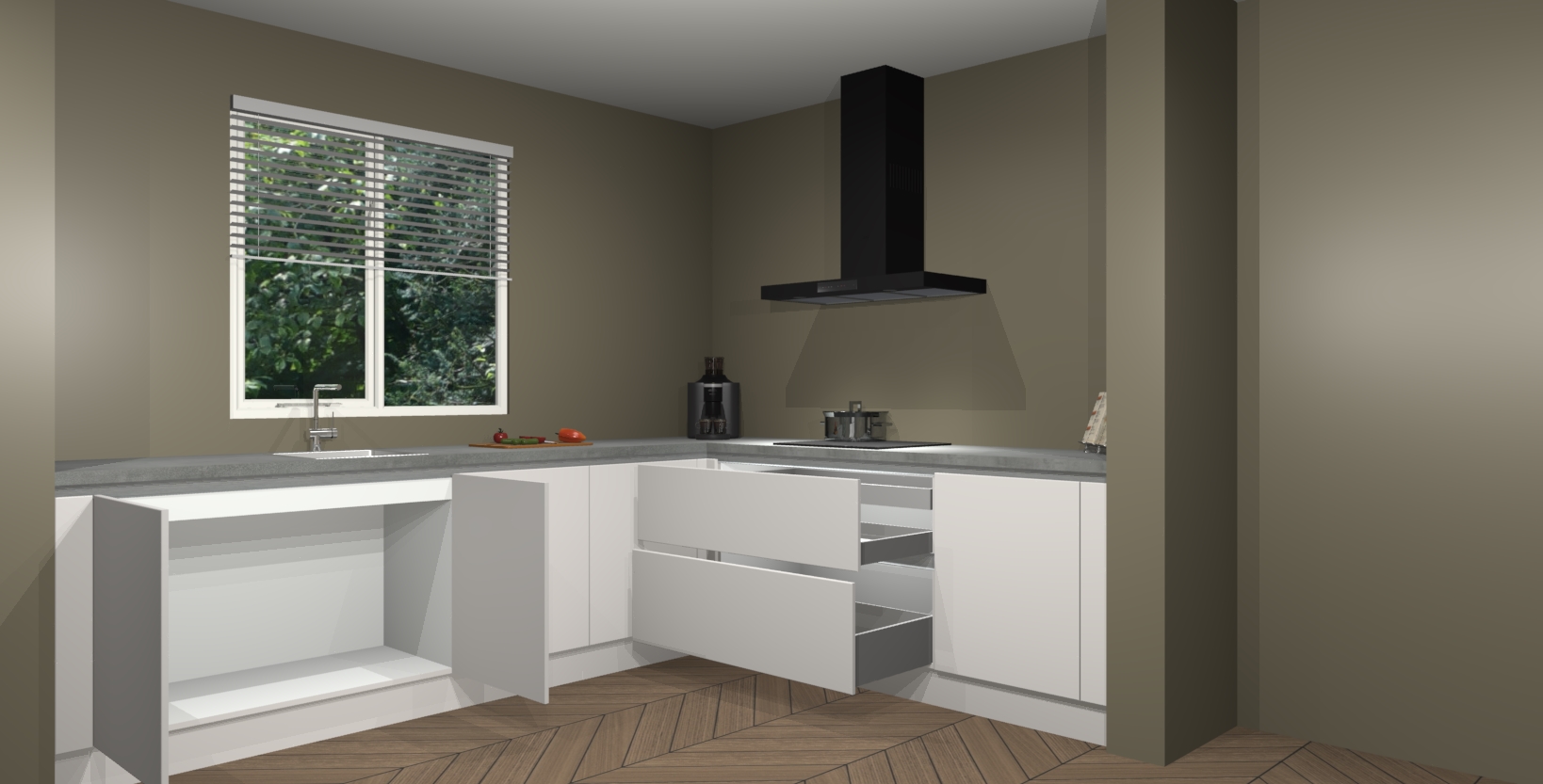 Hoekonderkast met le-mans systeem