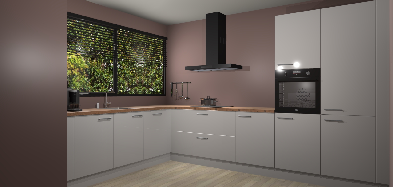 Met een modern, tijdloos design en ruime opslagruimte, zult u zich in no-time thuis voelen in uw nieuwe keuken. Uw leven wordt eenvoudiger met de soft-close deuren die voor het ultieme stille comfort zorgen - geen geluid dat u stoort terwijl u kookt. Ook is de keuken voorzien van 5 ingebouwde apparaten: een oven, inductie kookplaat, afzuigkap, vaatwasser en koelkast. Deze kunnen gemakkelijk na bestelling worden bijgewerkt naar AEG - waardoor uw luxe ervaring compleet is.