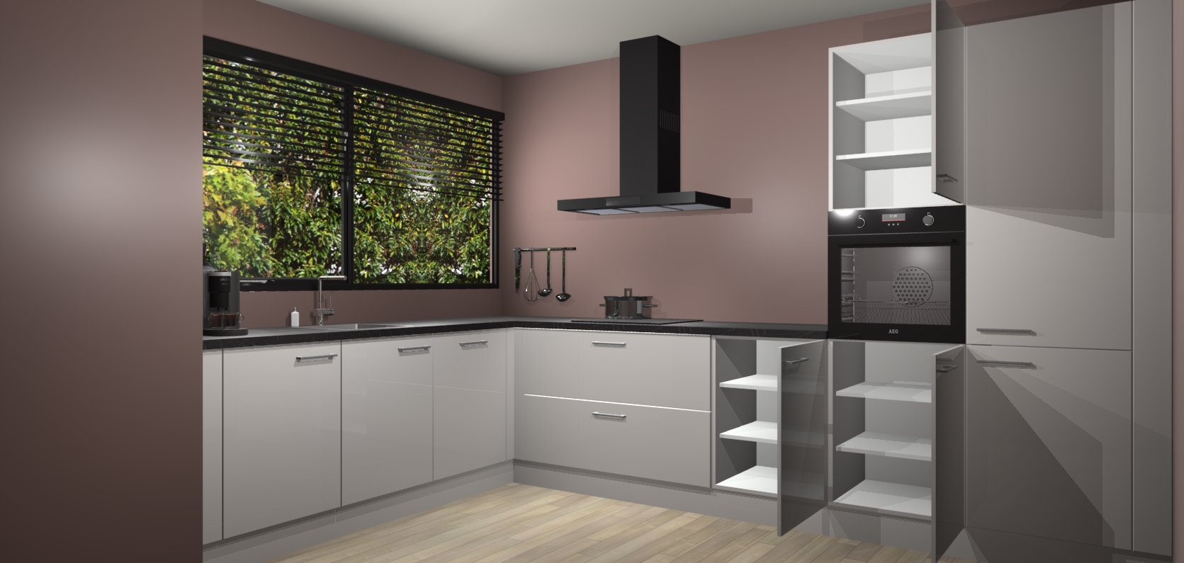 Met een modern, tijdloos design en ruime opslagruimte, zult u zich in no-time thuis voelen in uw nieuwe keuken. Uw leven wordt eenvoudiger met de soft-close deuren die voor het ultieme stille comfort zorgen - geen geluid dat u stoort terwijl u kookt. Ook is de keuken voorzien van 5 ingebouwde apparaten: een oven, inductie kookplaat, afzuigkap, vaatwasser en koelkast. Deze kunnen gemakkelijk na bestelling worden bijgewerkt naar AEG - waardoor uw luxe ervaring compleet is.