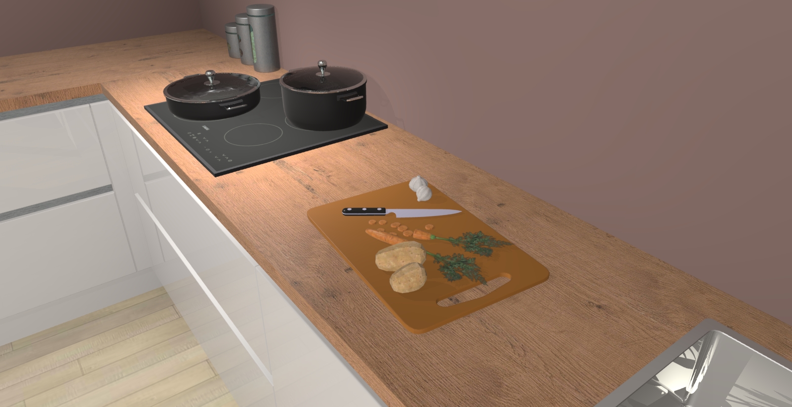 Inclusief plinten, stelpoten en werkblad