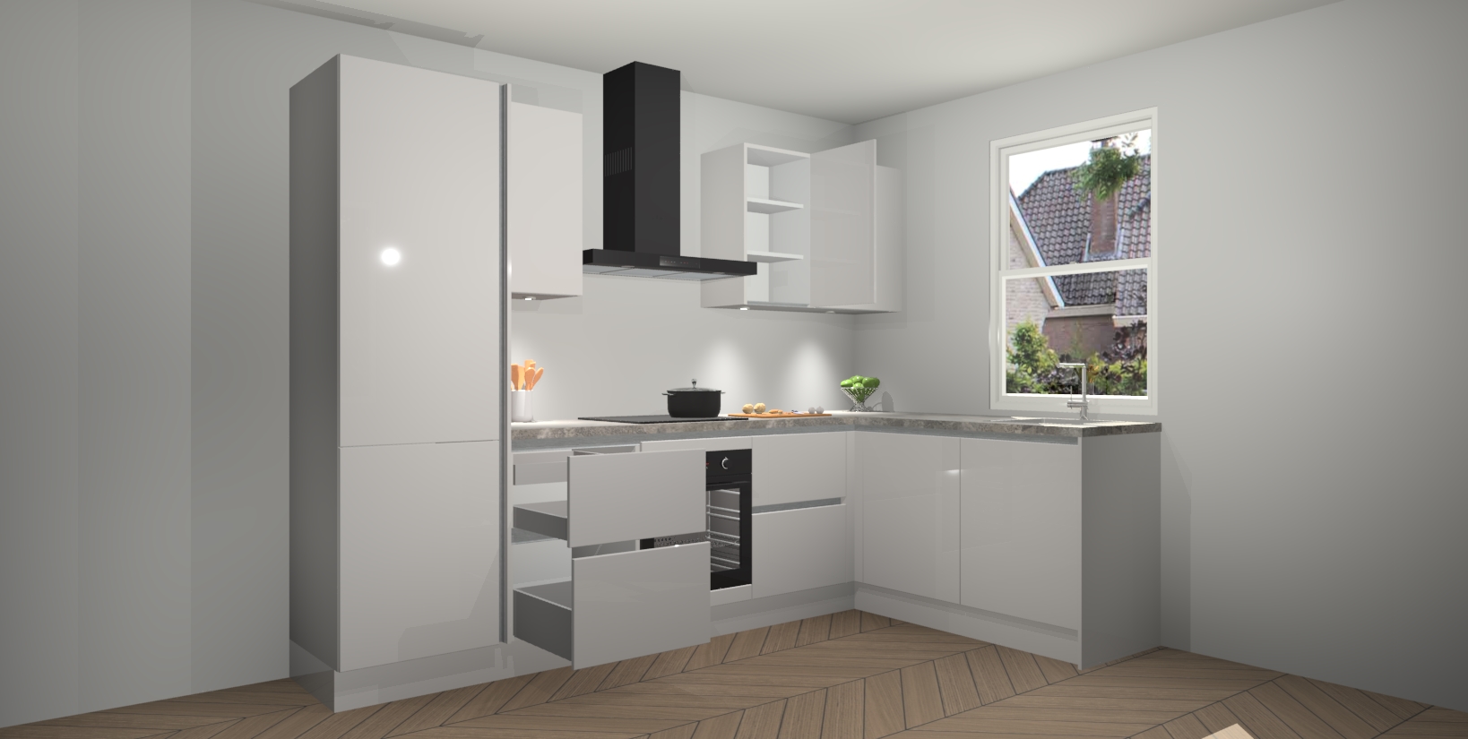 Inclusief plinten, stelpoten en werkblad