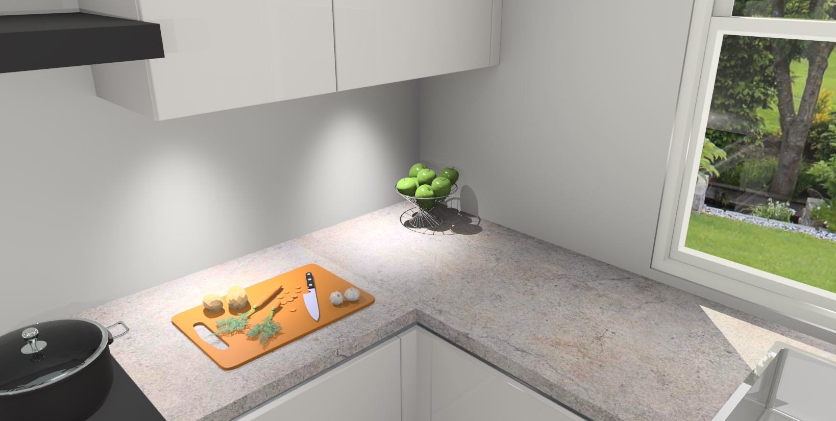 - Bij een hoekwerkblad zijn de hoeken in gevreesd en op maat gemaakt