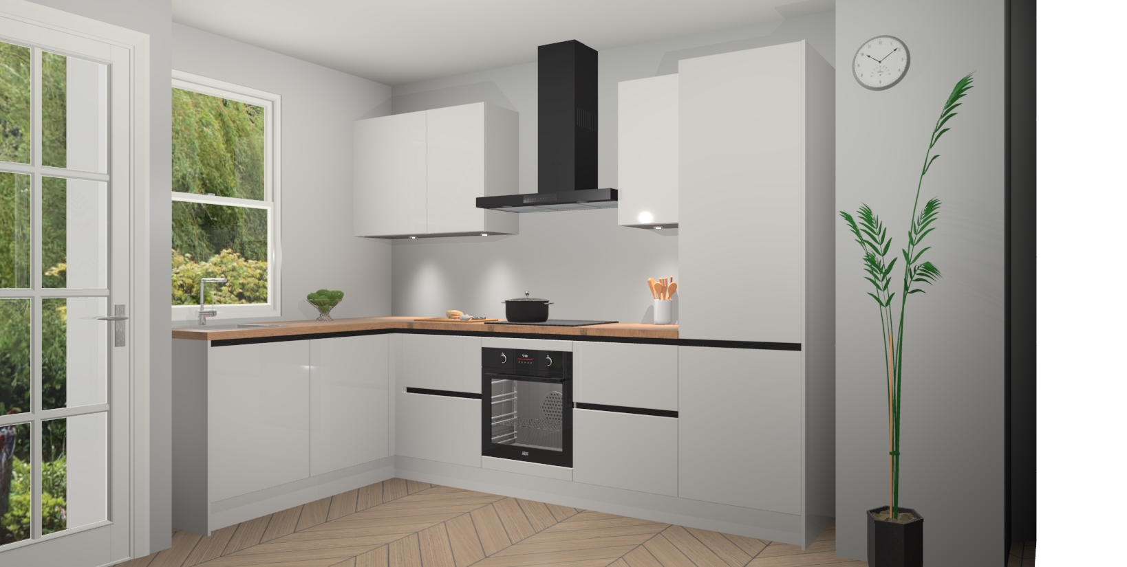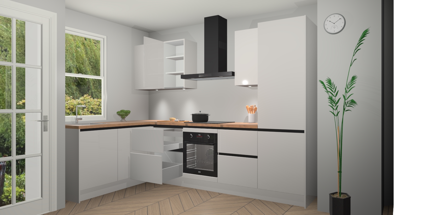 U hoeft zich ook geen zorgen te maken over een gebrek aan opbergruimte, want deze keuken heeft voldoende opbergmogelijkheden zowel boven als onder het aanrecht. Om het leven nog makkelijker te maken, wordt deze moderne hoekkeuken geleverd met 5 ingebouwde apparaten, waaronder een oven, inductiekookplaat, afzuigkap, vaatwasser en koelkast, zodat u in een mum van tijd klaar bent voor actie!
