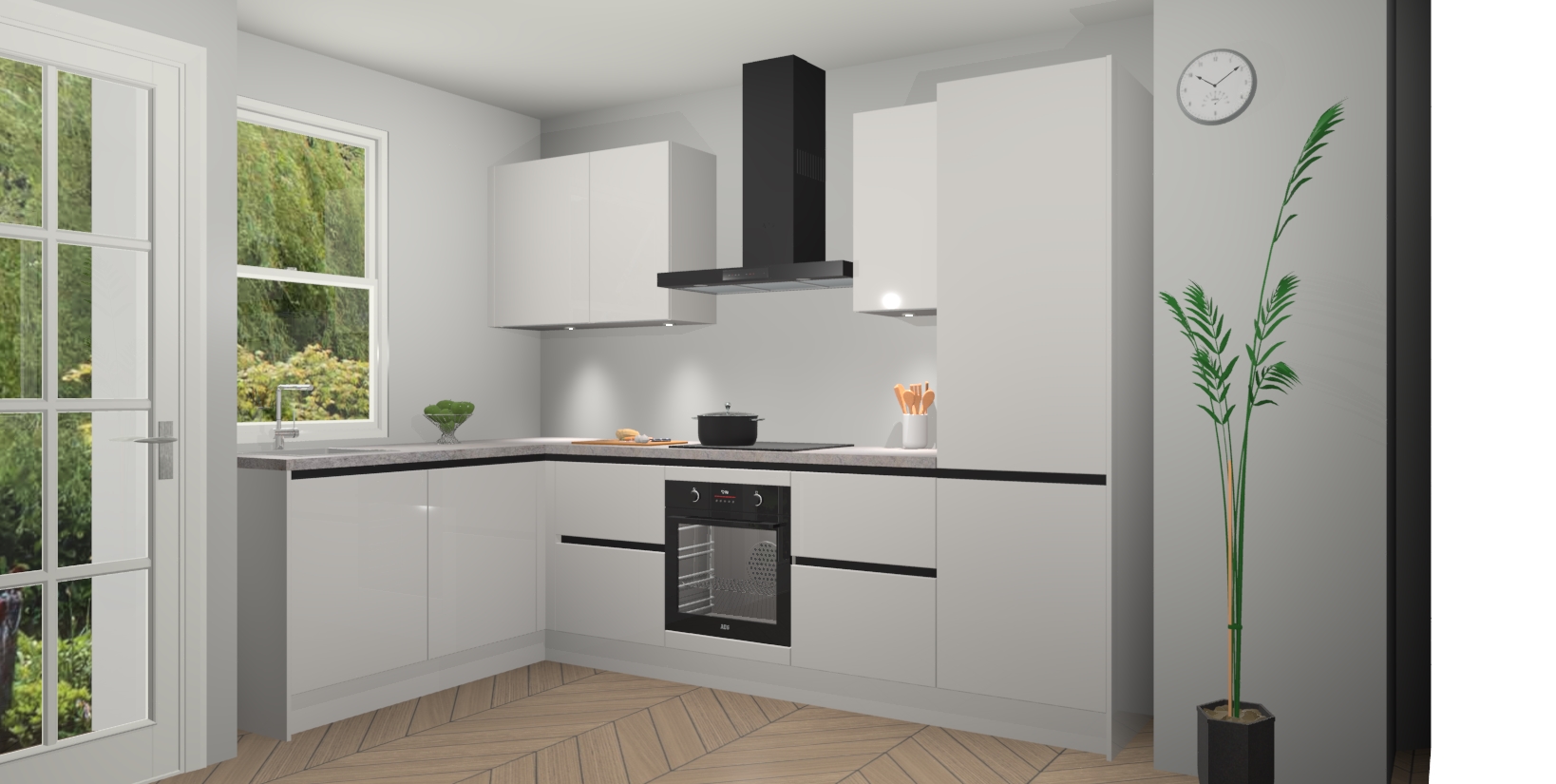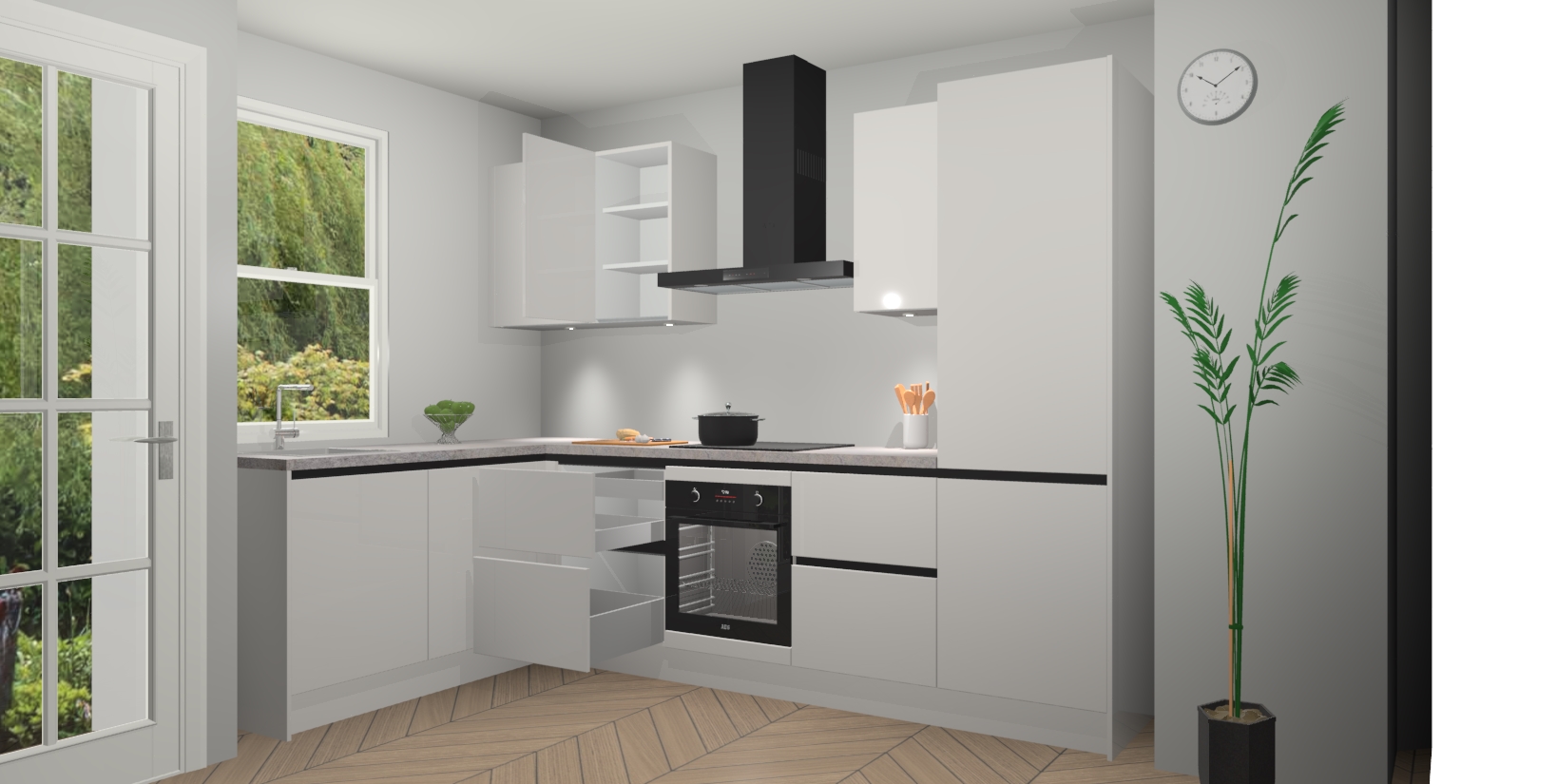 U hoeft zich ook geen zorgen te maken over een gebrek aan opbergruimte, want deze keuken heeft voldoende opbergmogelijkheden zowel boven als onder het aanrecht. Om het leven nog makkelijker te maken, wordt deze moderne hoekkeuken geleverd met 5 ingebouwde apparaten, waaronder een oven, inductiekookplaat, afzuigkap, vaatwasser en koelkast, zodat u in een mum van tijd klaar bent voor actie!