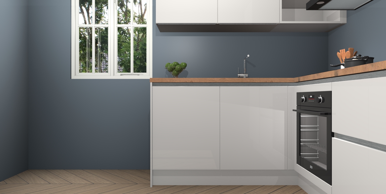 Voor nog meer gemak heeft deze keuken vijf ingebouwde apparaten - oven, inductiekookplaat, afzuigkap, vaatwasser en koelkast. Bovendien hebben alle kasten softclose deuren voor extra comfort bij het sluiten. Dit alles voor een verrassend lage vaste prijs - u vindt nergens anders een betere deal!