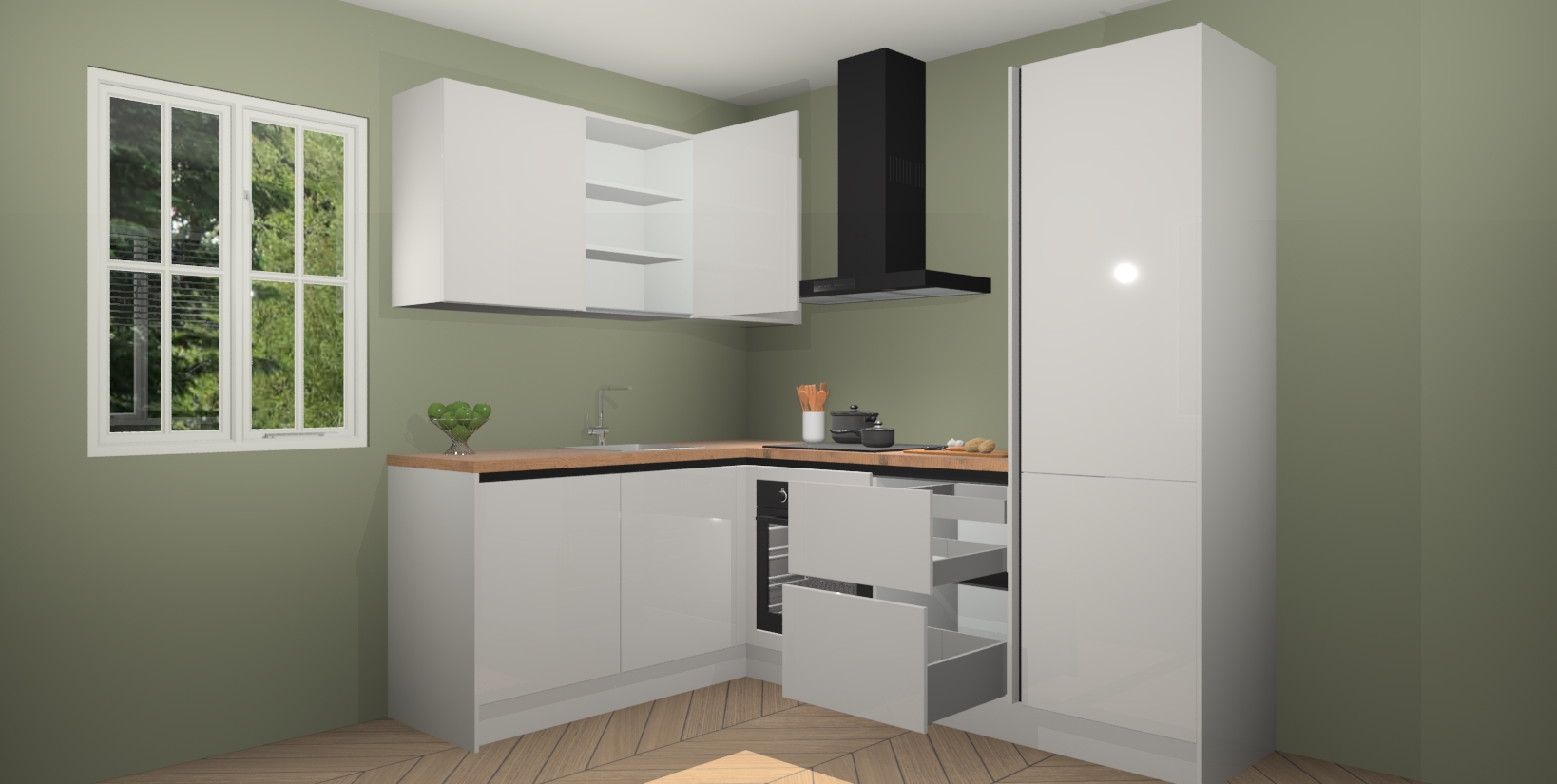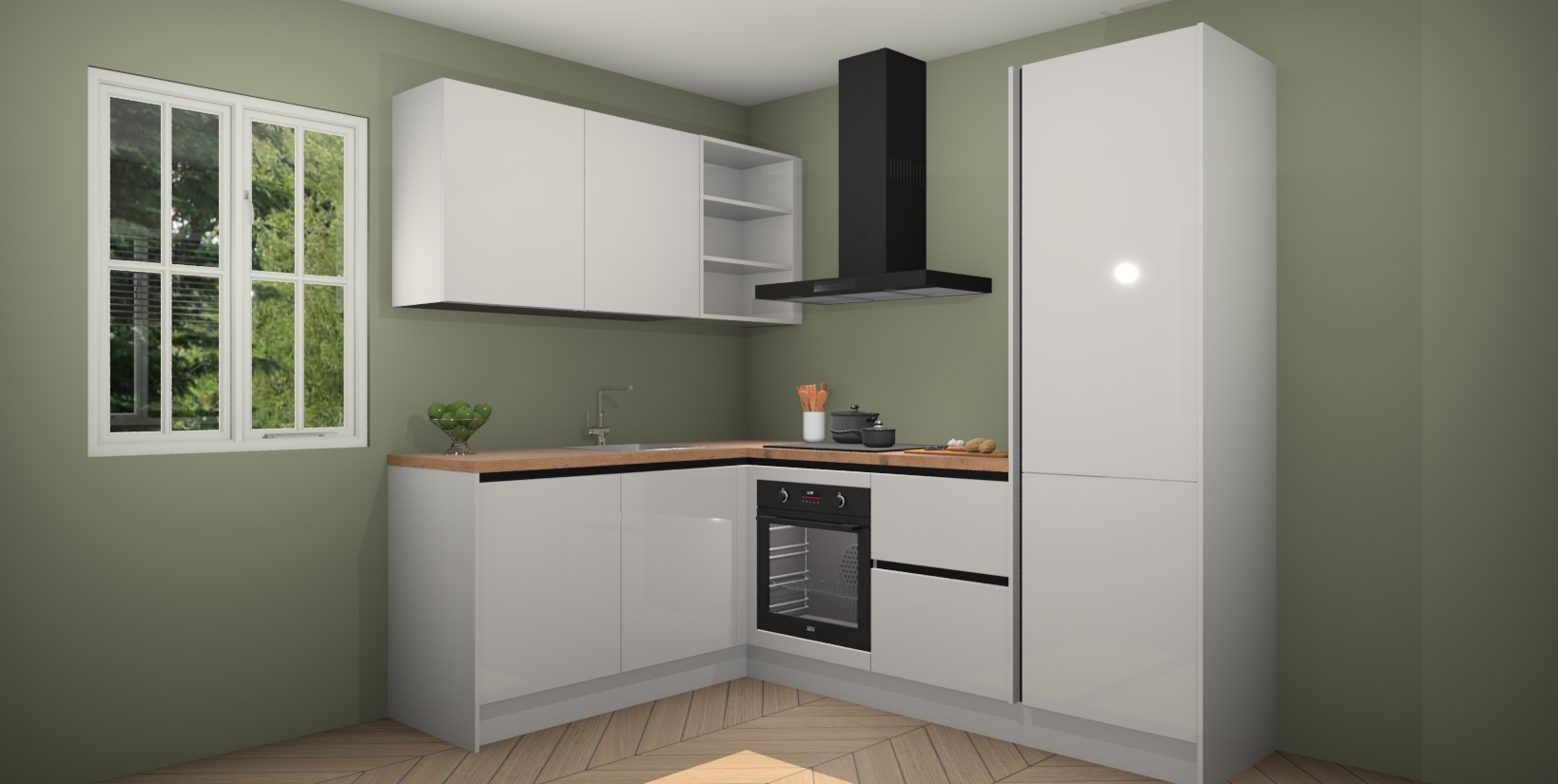 Voor nog meer gemak heeft deze keuken vijf ingebouwde apparaten - oven, inductiekookplaat, afzuigkap, vaatwasser en koelkast. Bovendien hebben alle kasten softclose deuren voor extra comfort bij het sluiten. Dit alles voor een verrassend lage vaste prijs - u vindt nergens anders een betere deal!