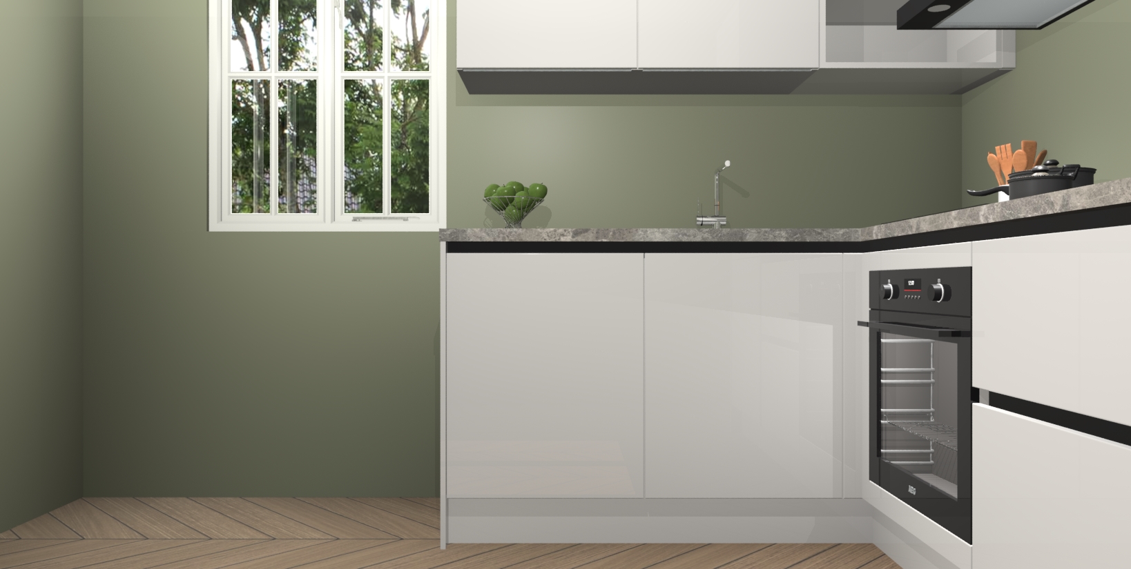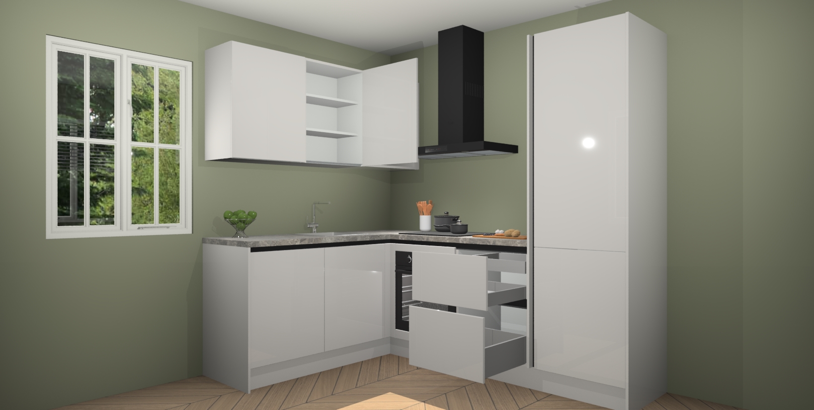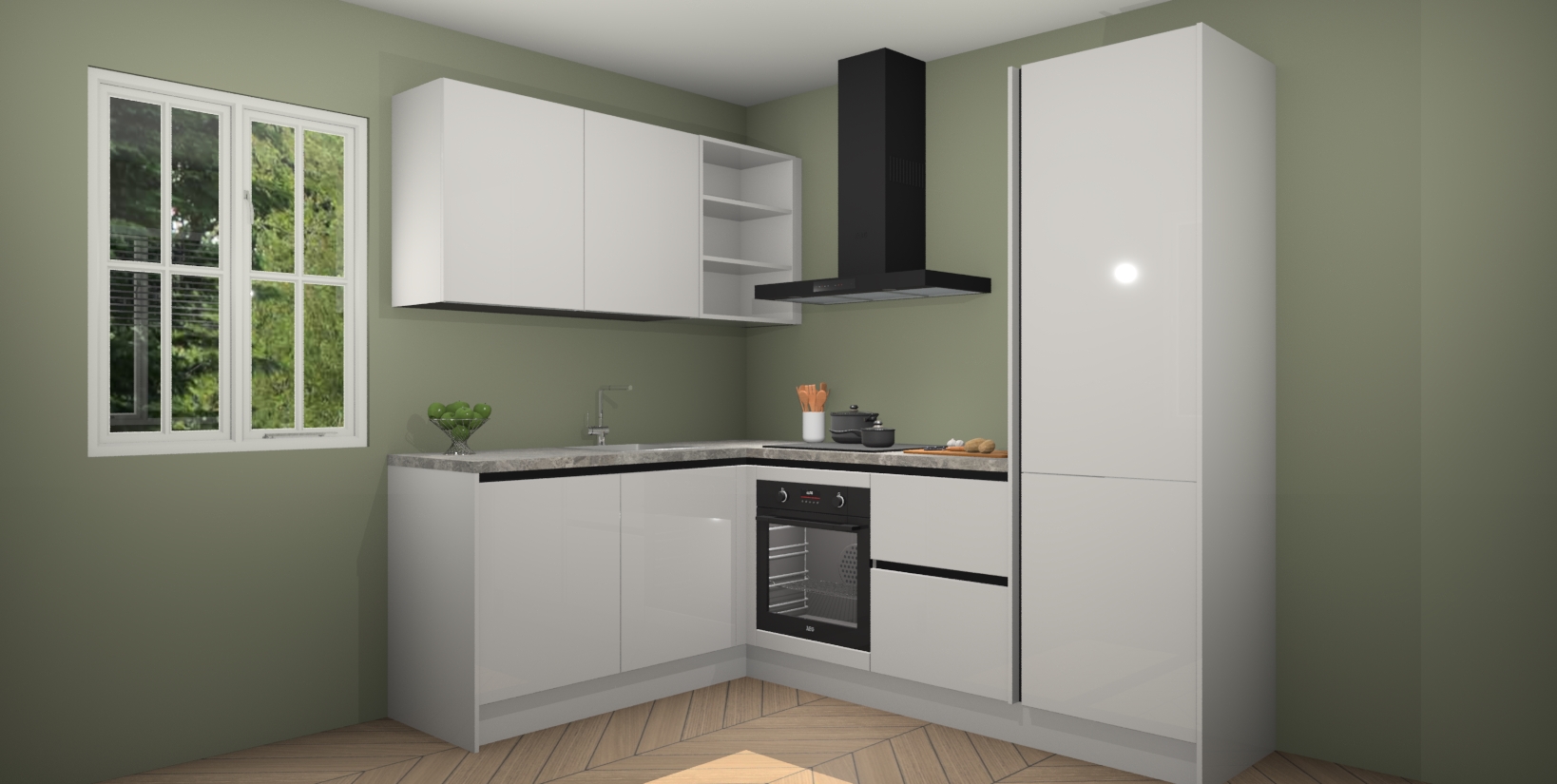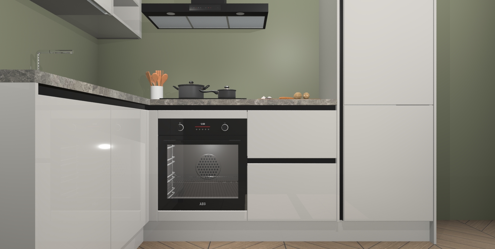 Voor nog meer gemak heeft deze keuken vijf ingebouwde apparaten - oven, inductiekookplaat, afzuigkap, vaatwasser en koelkast. Bovendien hebben alle kasten softclose deuren voor extra comfort bij het sluiten. Dit alles voor een verrassend lage vaste prijs - u vindt nergens anders een betere deal!