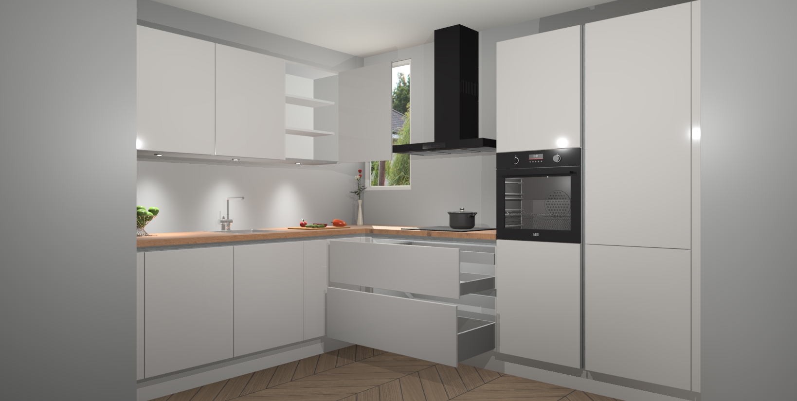 De ruime opbergruimte van dit model maakt het bereiden van voedsel en het gebruik van apparaten snel en gemakkelijk. Het beste van alles is dat het wordt geleverd met vijf inbouwapparaten: een oven, inductiekookplaat, afzuigkap, vaatwasser en koelkast - die allemaal gemakkelijk kunnen worden opgewaardeerd naar AEG na aankoop. Wat de gemaksfactor nog groter maakt, is het feit dat alle cabines voorgemonteerd worden geleverd, zodat u er meteen mee aan de slag kunt!