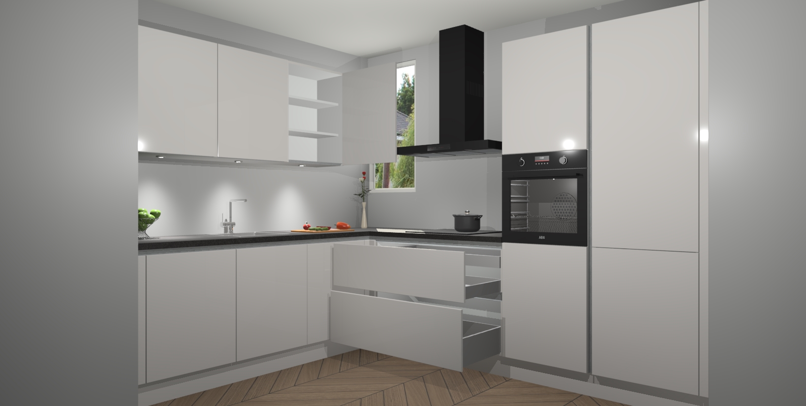 De ruime opbergruimte van dit model maakt het bereiden van voedsel en het gebruik van apparaten snel en gemakkelijk. Het beste van alles is dat het wordt geleverd met vijf inbouwapparaten: een oven, inductiekookplaat, afzuigkap, vaatwasser en koelkast - die allemaal gemakkelijk kunnen worden opgewaardeerd naar AEG na aankoop. Wat de gemaksfactor nog groter maakt, is het feit dat alle cabines voorgemonteerd worden geleverd, zodat u er meteen mee aan de slag kunt!