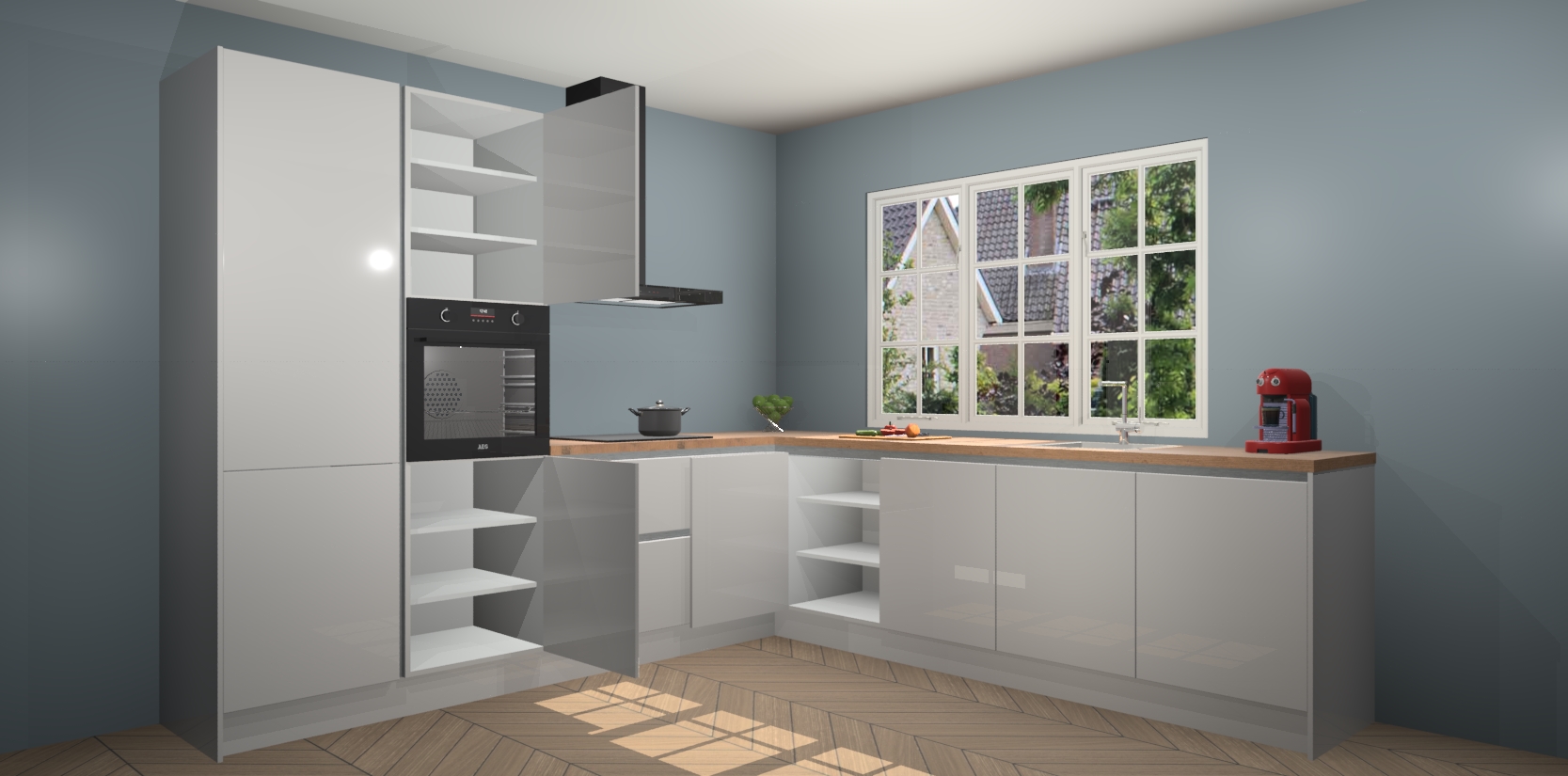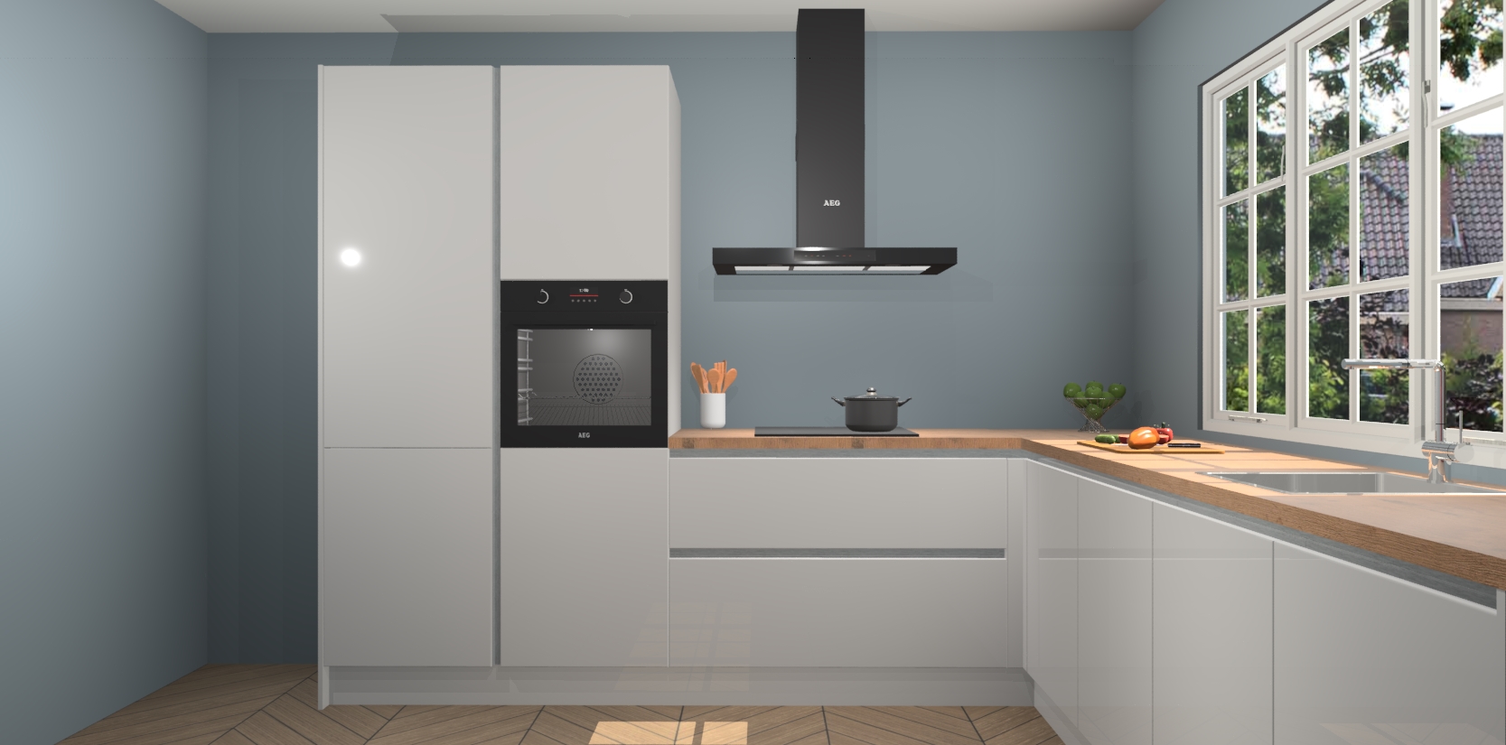 De keuken heeft veel opbergruimte, waardoor u alle ingrediënten gemakkelijk bereikbaar hebt staan. En daarnaast bevat deze volledig uitgeruste keuken ook 5 ingebouwde apparaten: een oven, inductiekookplaat, afzuigkap, vaatwasser en koelkast. Deze zijn heel eenvoudig na bestellen te upgraden naar AEG als u dit wilt. Bovendien zijn de softclose-kastdeuren ideaal; geef ze gewoon even een tikje en ze sluiten automatisch met geruisloze precisie.