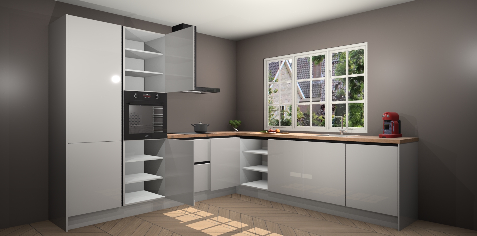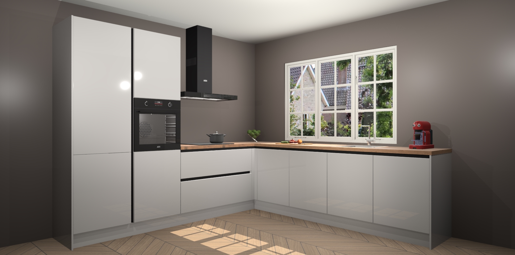 De keuken heeft veel opbergruimte, waardoor u alle ingrediënten gemakkelijk bereikbaar hebt staan. En daarnaast bevat deze volledig uitgeruste keuken ook 5 ingebouwde apparaten: een oven, inductiekookplaat, afzuigkap, vaatwasser en koelkast. Deze zijn heel eenvoudig na bestellen te upgraden naar AEG als u dit wilt. Bovendien zijn de softclose-kastdeuren ideaal; geef ze gewoon even een tikje en ze sluiten automatisch met geruisloze precisie.