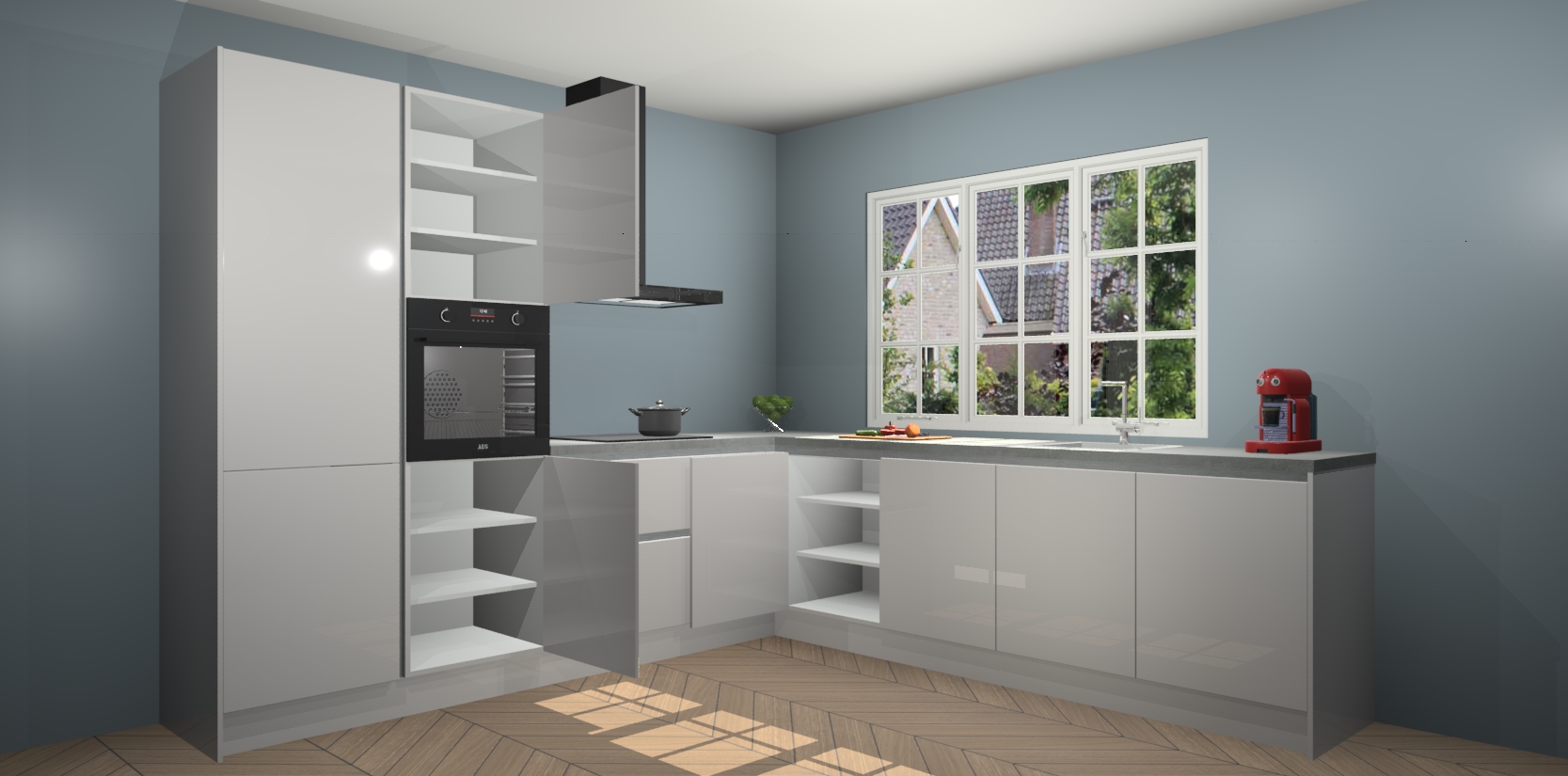 De keuken heeft veel opbergruimte, waardoor u alle ingrediënten gemakkelijk bereikbaar hebt staan. En daarnaast bevat deze volledig uitgeruste keuken ook 5 ingebouwde apparaten: een oven, inductiekookplaat, afzuigkap, vaatwasser en koelkast. Deze zijn heel eenvoudig na bestellen te upgraden naar AEG als u dit wilt. Bovendien zijn de softclose-kastdeuren ideaal; geef ze gewoon even een tikje en ze sluiten automatisch met geruisloze precisie.