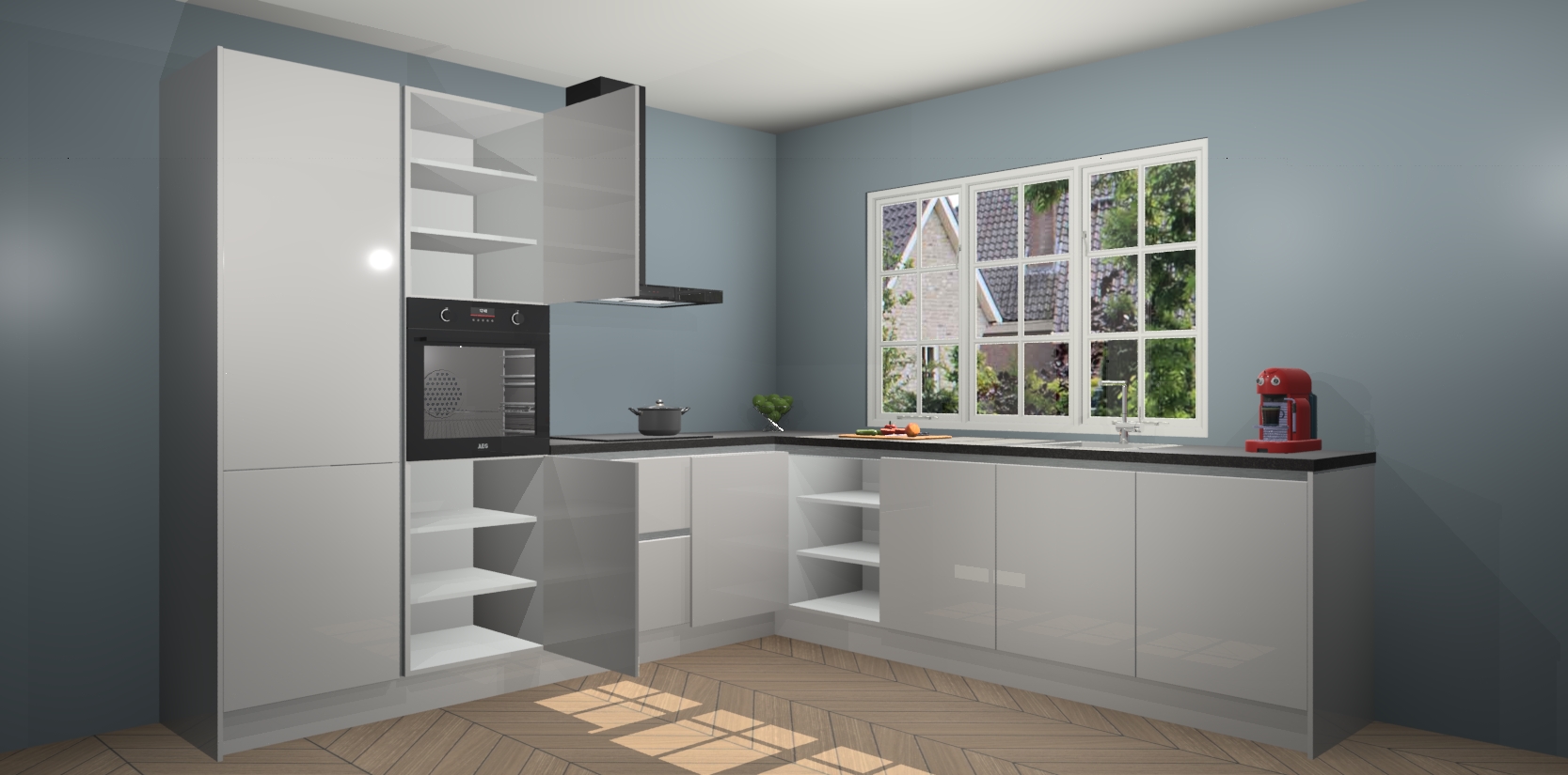 De keuken heeft veel opbergruimte, waardoor u alle ingrediënten gemakkelijk bereikbaar hebt staan. En daarnaast bevat deze volledig uitgeruste keuken ook 5 ingebouwde apparaten: een oven, inductiekookplaat, afzuigkap, vaatwasser en koelkast. Deze zijn heel eenvoudig na bestellen te upgraden naar AEG als u dit wilt. Bovendien zijn de softclose-kastdeuren ideaal; geef ze gewoon even een tikje en ze sluiten automatisch met geruisloze precisie.
