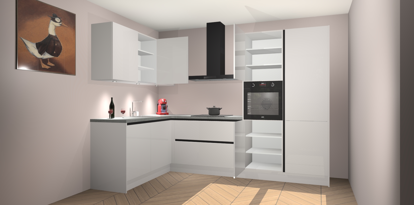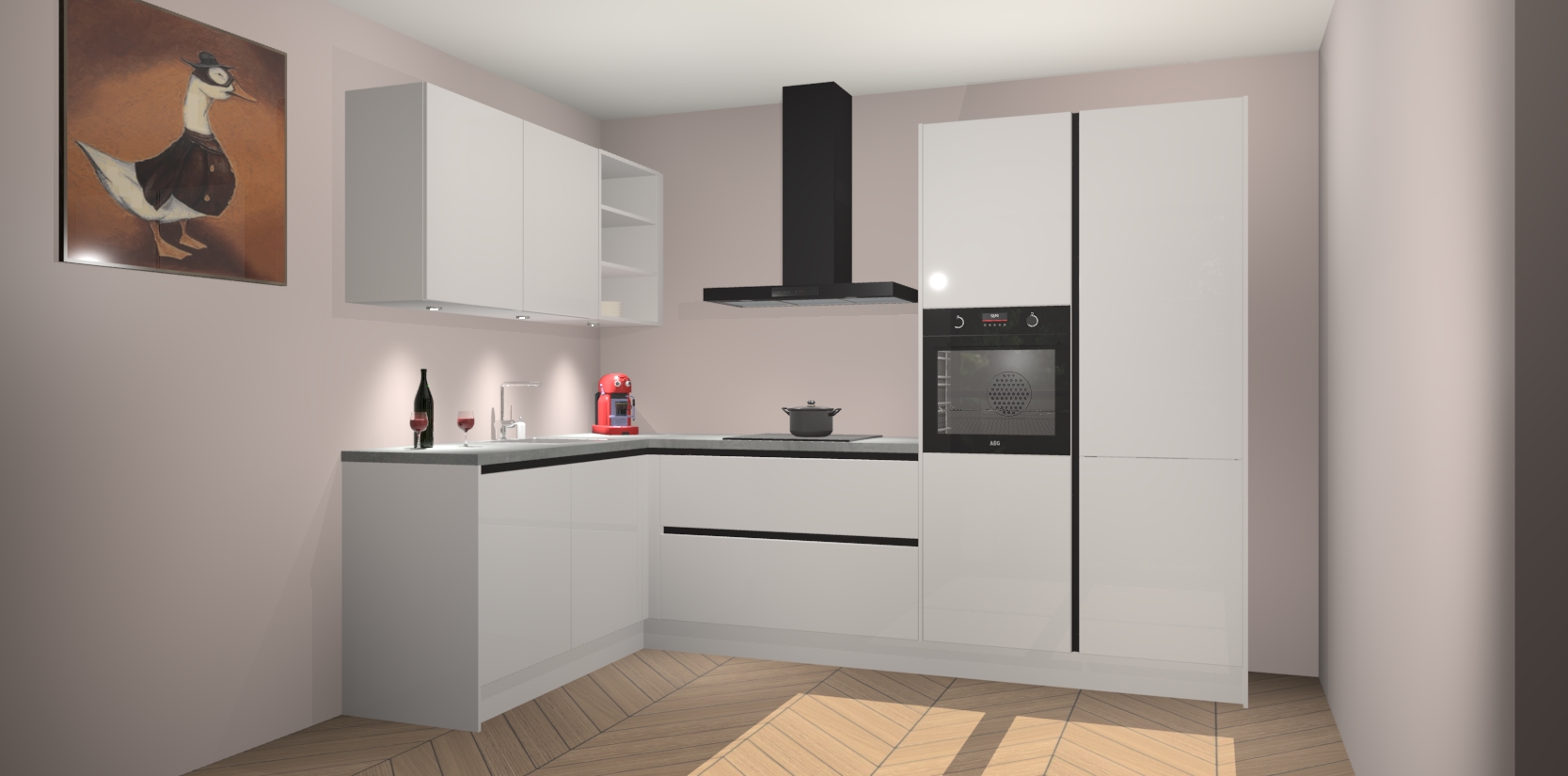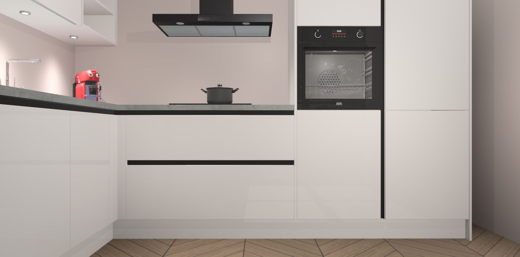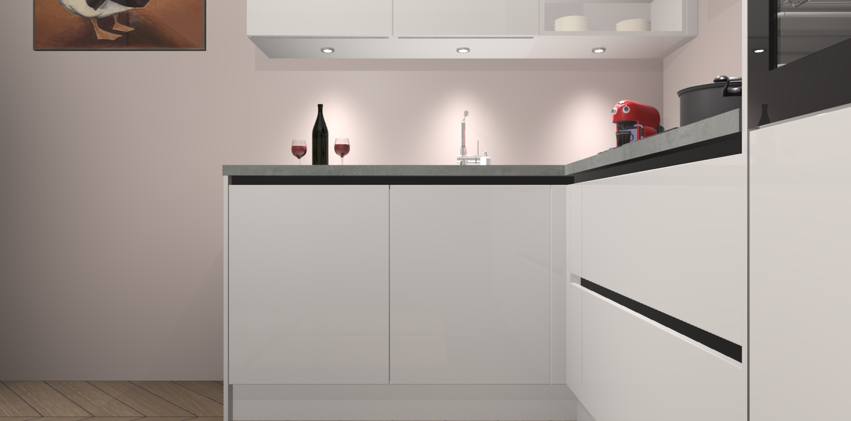 De Zijdegrijze Hoogglans greeploze keuken Cognac gaat alleen maar om de beste keukenervaring. Kies gewoon de beste apparatuur en ongeëvenaarde Duitse constructie die u thuis wilt hebben en verander uw huiskamer hartelijkheid meteen in professionaliteit. Laat de toon weten dat u gemakkelijk kan genieten van alle luxe die u verdiend? Bestel nu de Zijdegrijze Hoogglans greeploze keuken Cognac voor bij u thuis!