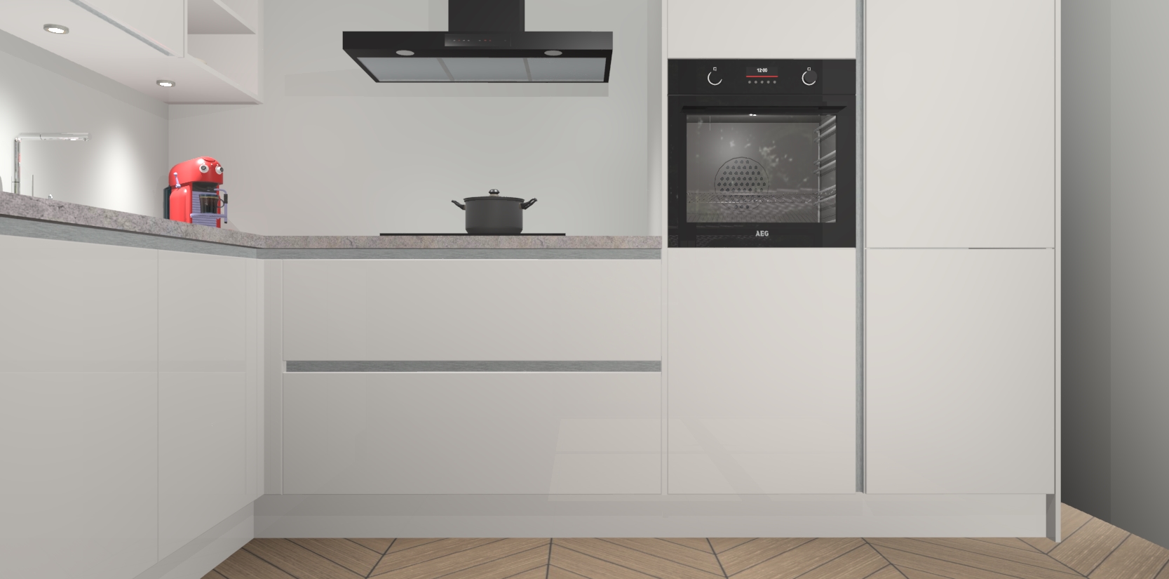 De Zijdegrijze Hoogglans greeploze keuken Cognac gaat alleen maar om de beste keukenervaring. Kies gewoon de beste apparatuur en ongeëvenaarde Duitse constructie die u thuis wilt hebben en verander uw huiskamer hartelijkheid meteen in professionaliteit. Laat de toon weten dat u gemakkelijk kan genieten van alle luxe die u verdiend? Bestel nu de Zijdegrijze Hoogglans greeploze keuken Cognac voor bij u thuis!