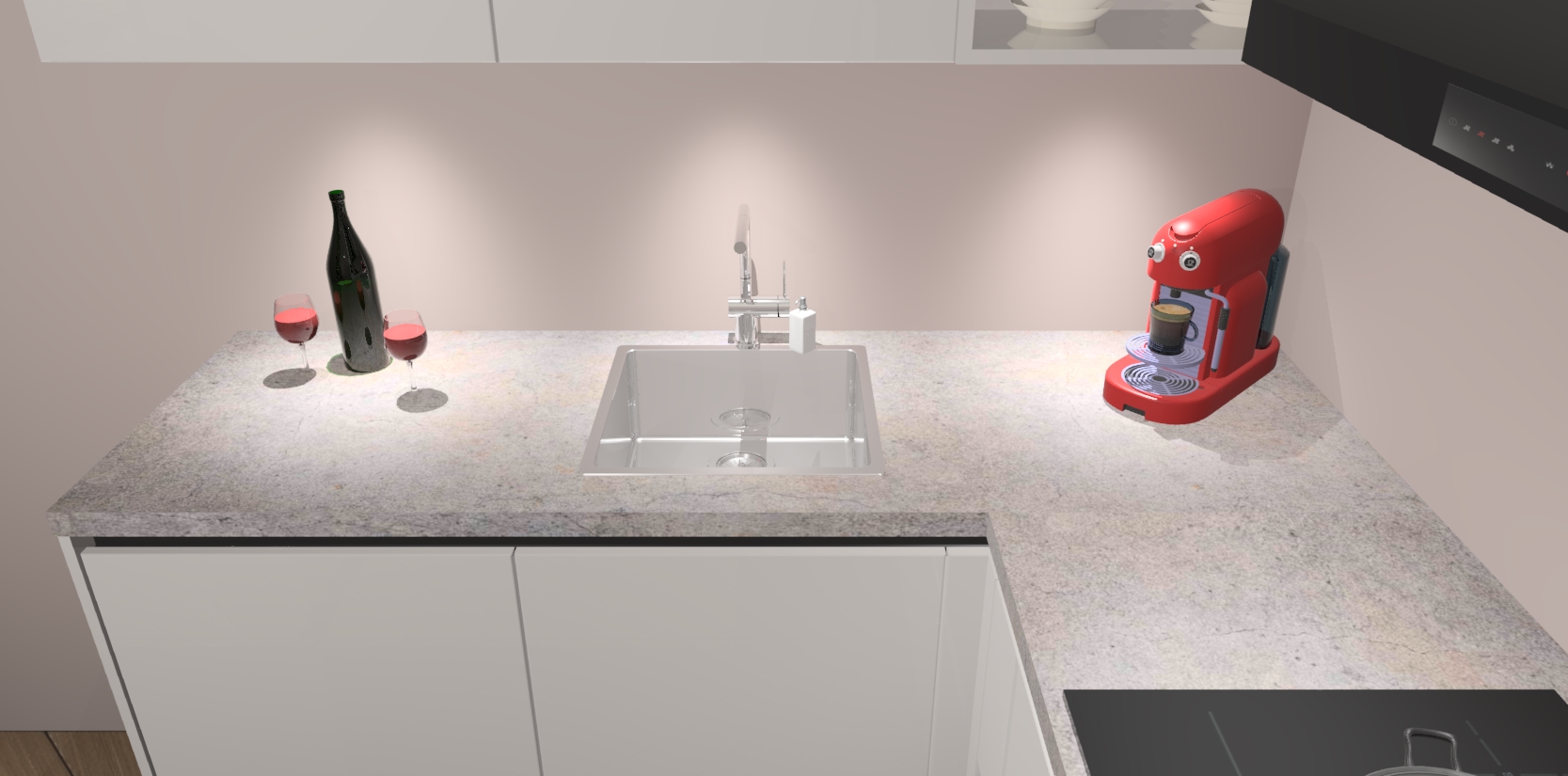 - Bij een hoekwerkblad zijn de hoeken in gevreesd en op maat gemaakt