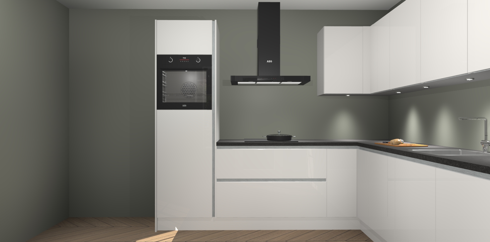 De Zijdegrijze hoogglans greeploze keuken Debar is uitgerust met vijf inbouwapparaten die elke kooktaak handig en efficiënt maken. Een oven, inductiekookplaat, afzuigkap, vaatwasser en koelkast zijn standaard, maar kunnen na bestelling eenvoudig worden geupgrade naar AEG. Profiteer vervolgens van de softclose deuren voor snelle toegang en geruisloze toegang.