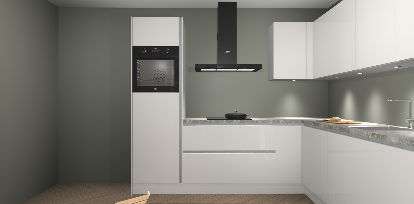 De Zijdegrijze hoogglans greeploze keuken Debar is uitgerust met vijf inbouwapparaten die elke kooktaak handig en efficiënt maken. Een oven, inductiekookplaat, afzuigkap, vaatwasser en koelkast zijn standaard, maar kunnen na bestelling eenvoudig worden geupgrade naar AEG. Profiteer vervolgens van de softclose deuren voor snelle toegang en geruisloze toegang.